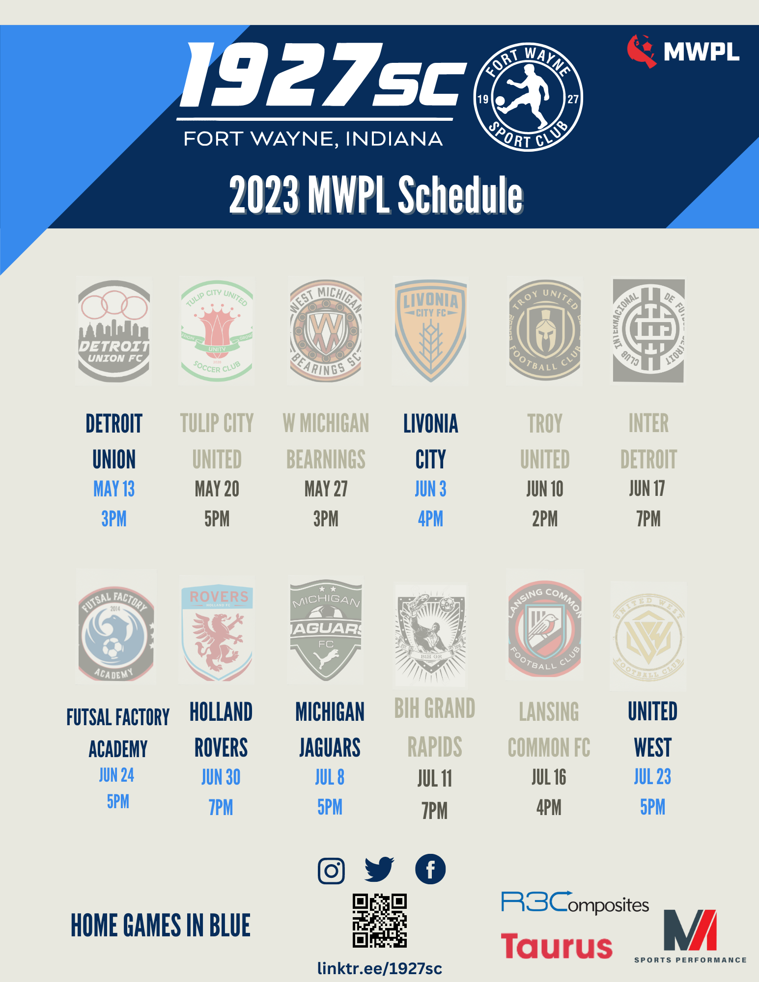 To see 1927SC in action, check out their schedule here. Their season opener is May 13 at 3 p.m. Tickets are $5 and are available online or at the door. Food and drinks, including adult beverages, are available at games.