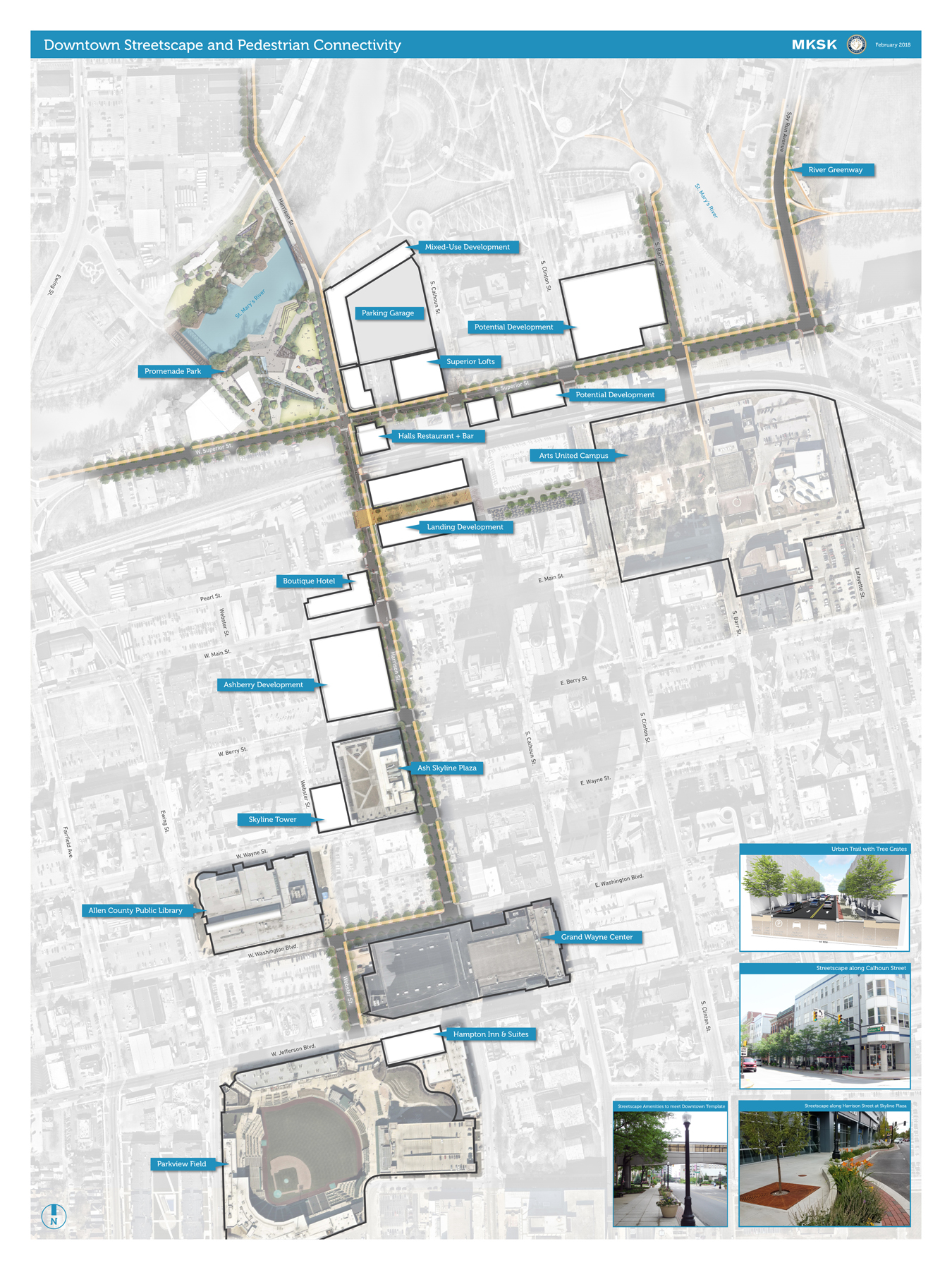 In the 2003 “Downtown Blueprint for The Future” report, the city identified the elements of a healthy downtown, including prioritizing its “core areas” of corridors on Harrison Street, Superior Street, Lafayette Street, and Jefferson Boulevard that connect major destinations and capitalize on the potential of the city’s three rivers.