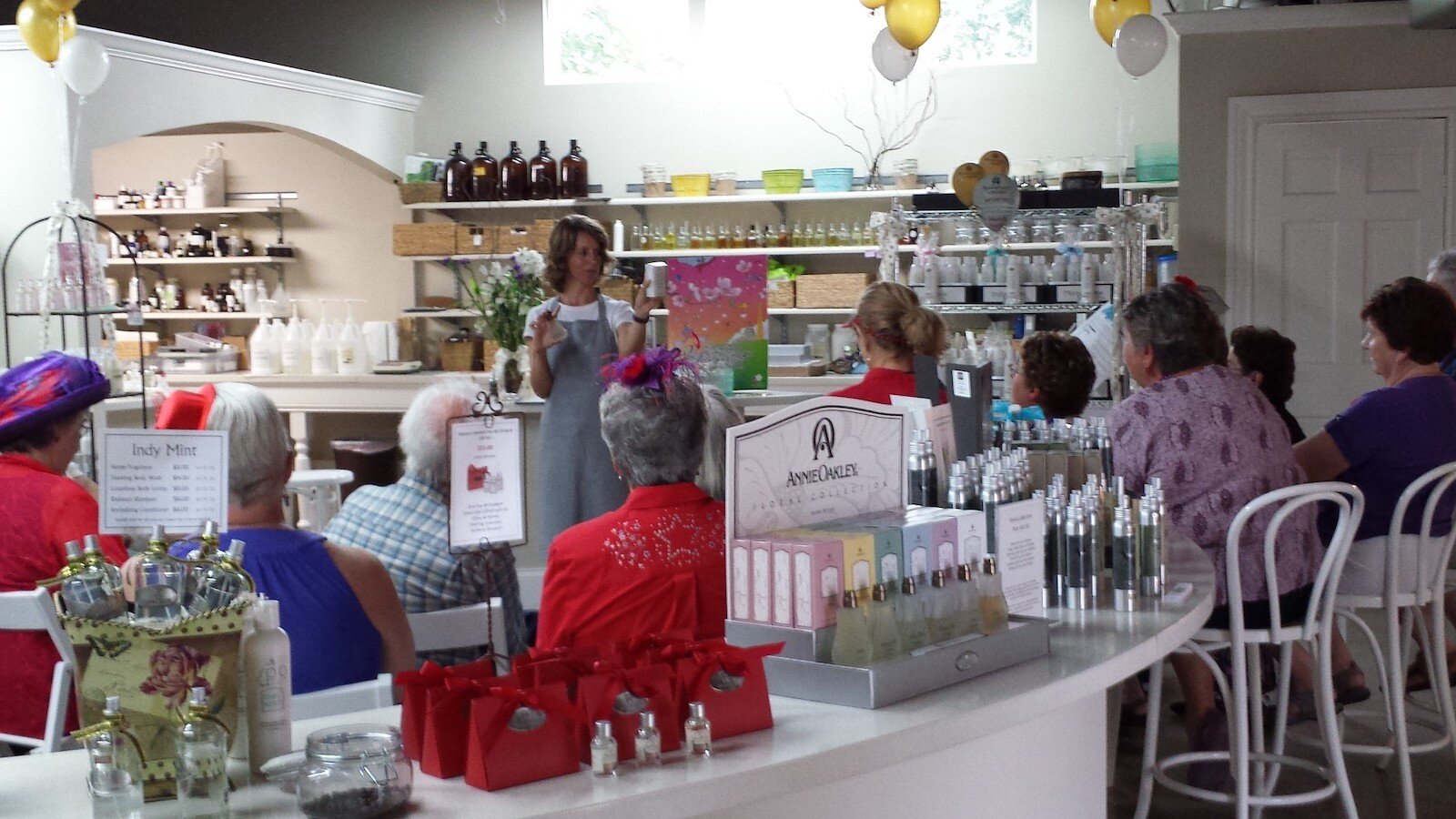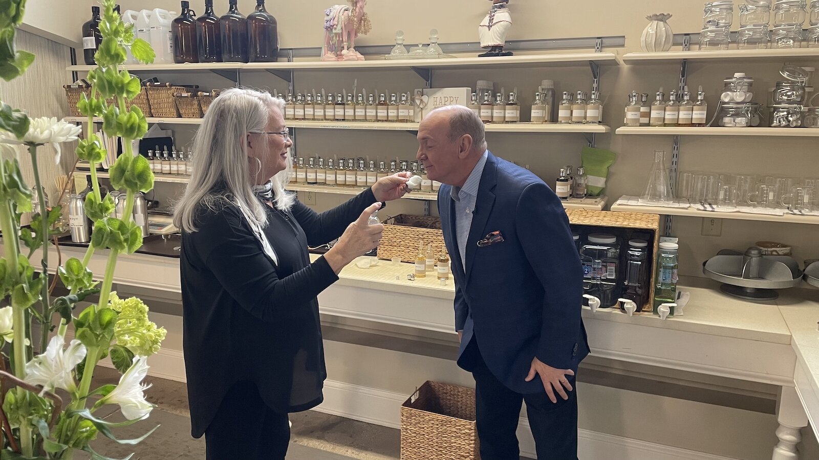 “They can mix anything together, and it smells just beautiful,” she says. “It all comes down to personal preference. I let their nose do the walking. We give some direction—if they want something made up, we can take the top note, middle note, and bottom note, and then take it from there. We’ve helped thousands of guests create their own scents.” In addition to customers being able to mix their own scents, they can also take tours of the business.