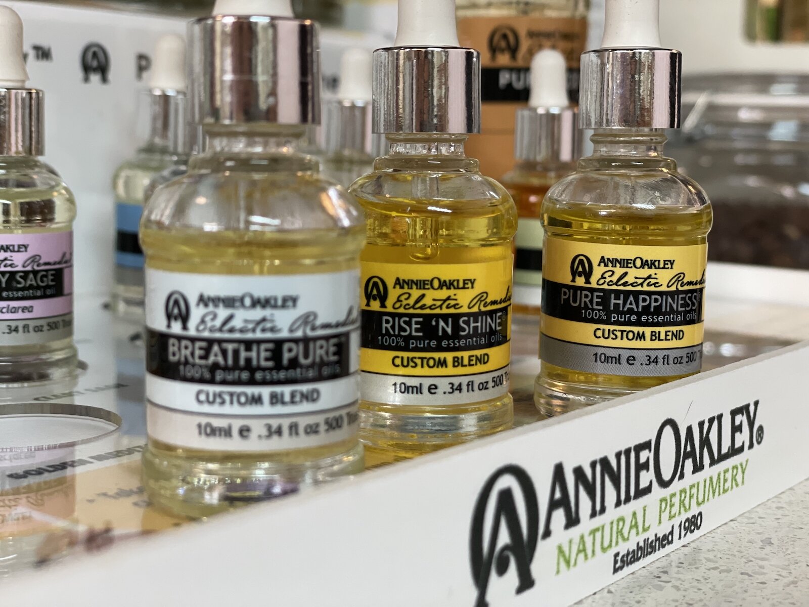 A key selling point for Annie Oakley perfumes is that they are natural, relying on essential oils and natural fragrances, as opposed to department store perfumes, many of which contain chemicals.