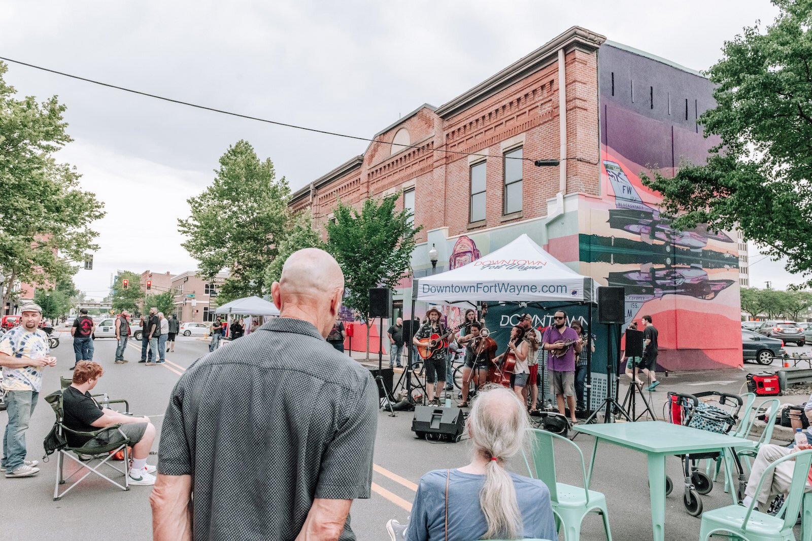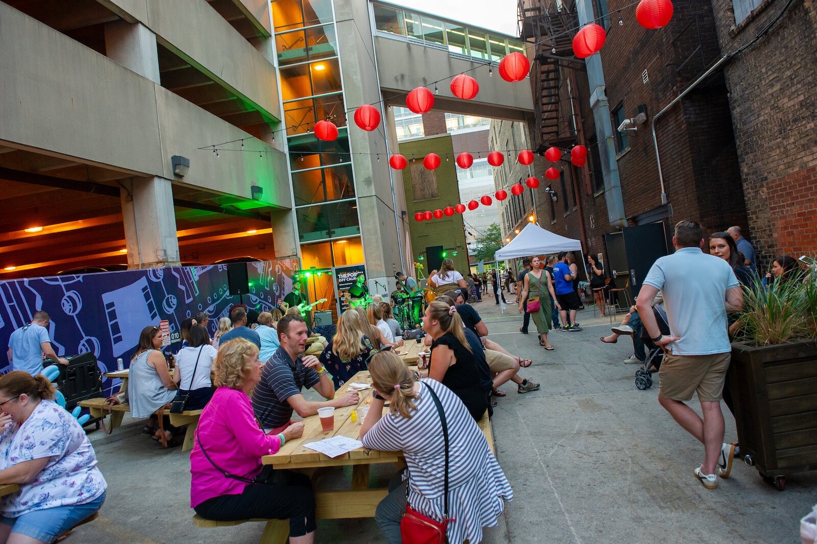 The 2023 Art Crawl: Alley Bash will be located within the footprint of the Bill Blass Runway, The TriCore Porch Off Calhoun, and the patio space behind JK O’Donnell’s– all of which are part of the Double Plus alleyway network in Downtown Fort Wayne.