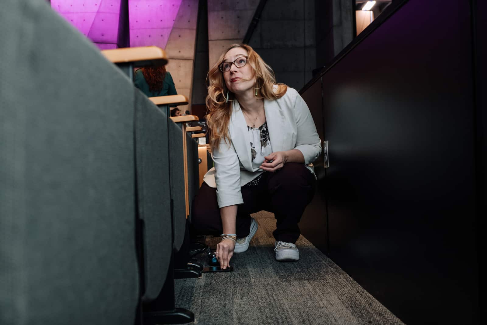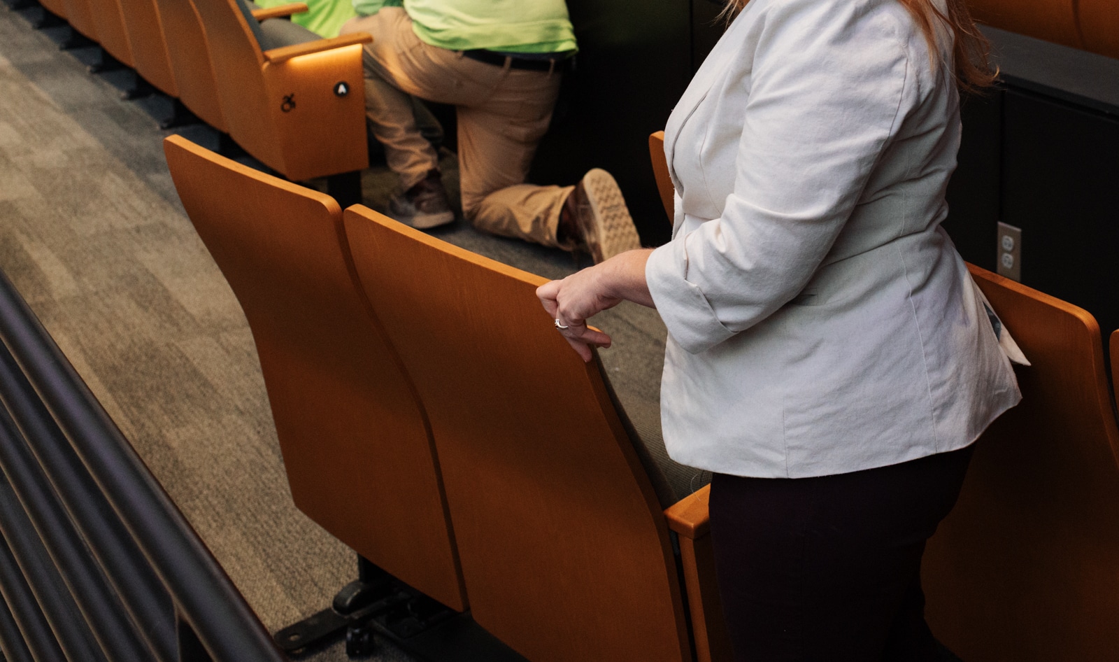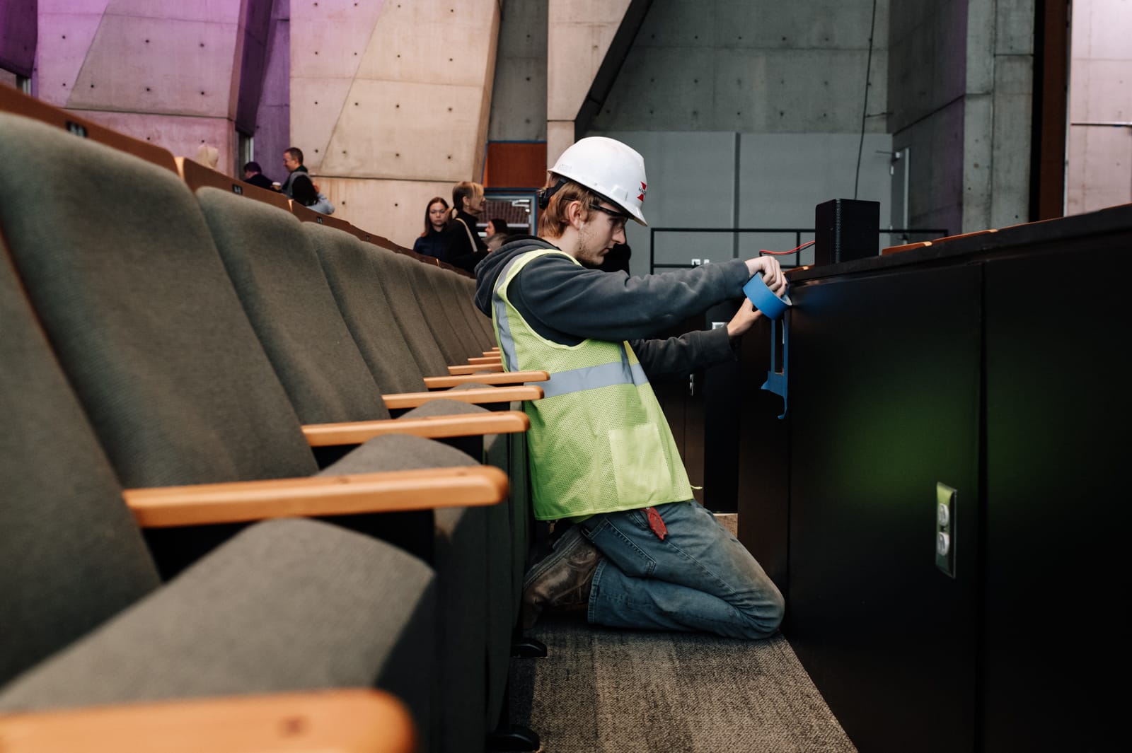 To achieve this, small sections of seats can be unpinned and rolled away, so audience members who use wheelchairs can sit next to the people they came with, rather than being sent to an open portion of the auditorium. For guests who prefer to transfer from a mobility device, new seats feature ambulatory arms.