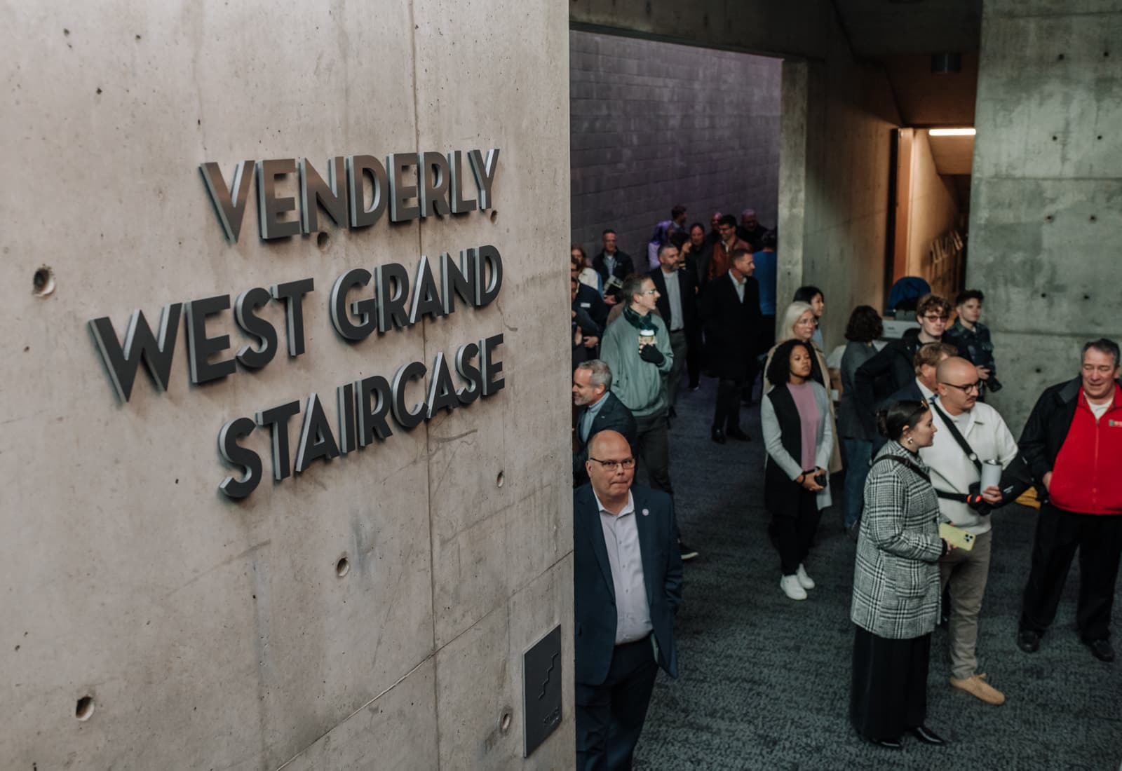 “Thanks to the united effort of hundreds of people in our community, working together, we have made that vision a reality. This project has required the dedicated work of many, many individuals over the past ten years,” he said at the ceremony. “Arts United board members; committee members; Arts United staff members, both past and present; elected officials; economic development leaders; community partners; the talented teams from Hagerman Construction and the MKM Architecture; DLR Group; Theater Planning and Design; all our great subcontractors; and, of course, our very generous funders.