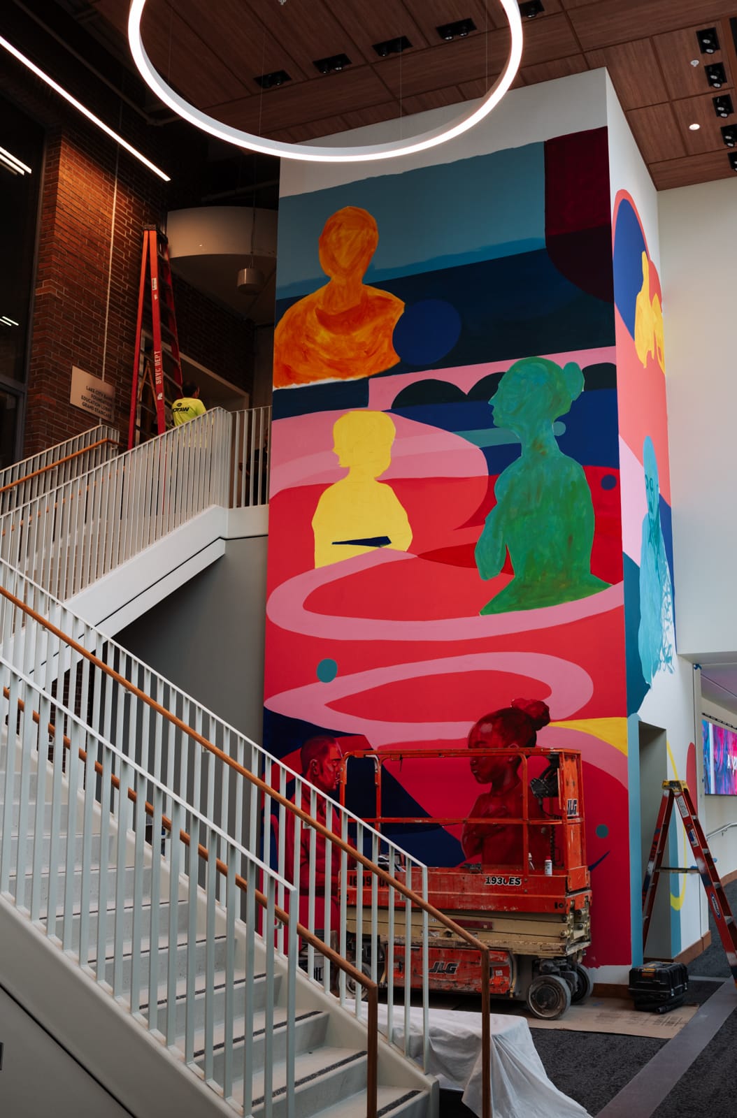 Inside, guests will find updates to the box office and concessions, as well as new additions like a merchandise area and a larger women’s restroom in the lobby. Connected to the original lobby is a newly constructed Floyd A. & Betty Lou Lancia Community Arts Education Wing Lobby, which features a mural from Phresh Laundry (Theopolis Smith III), an elevator with second-floor access, and a family restroom.