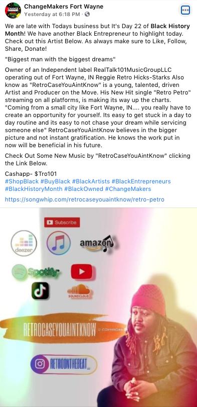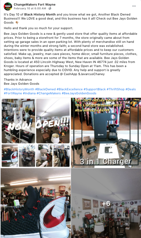 To celebrate Black History Month in February, ChangeMakers are using their Facebook page as an open platform to promote Black entrepreneurs in Fort Wayne, and the fire behind their social justice movement is creating real results for local business owners.