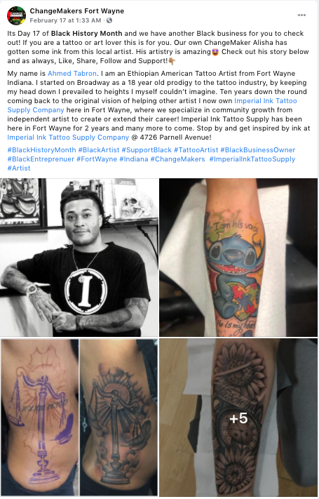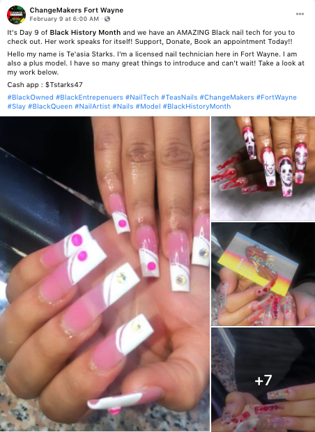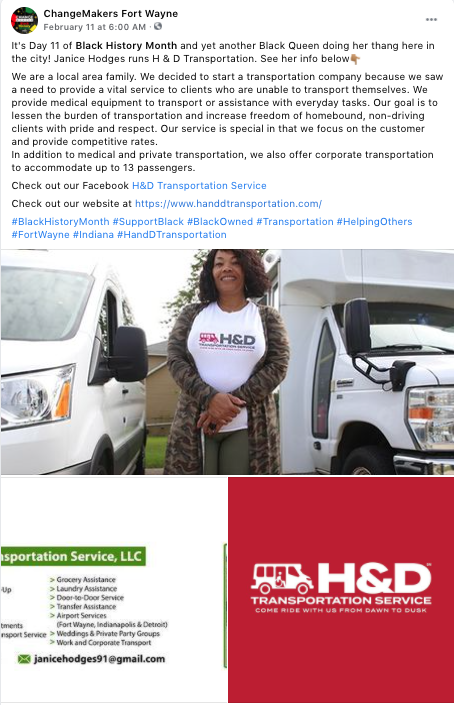 To see more posts about Black-owned small businesses in Fort Wayne, visit ChangeMakers Fort Wayne’s Facebook page, and search #BlackHistoryMonth.