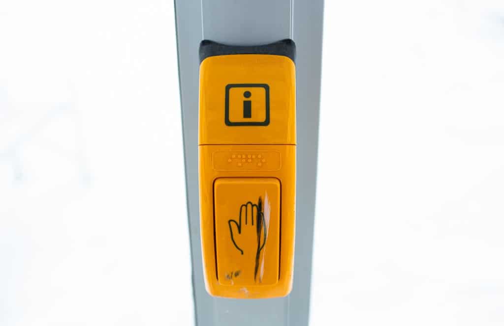 These displays, powered by high-contrast e-ink technology, provide the timetable for the bus stop where they are installed. A button, equipped with braille and located below the display, enables an audio readout of the timetable, letting people know when the next bus is arriving and where it is going, as well as the next several arrival times and destinations for that stop.