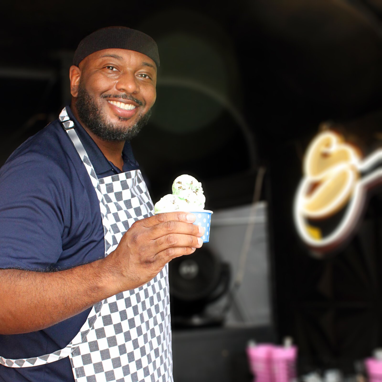 Tony Belton, owner of Classic City Creamery and The Scoop Hitchen, at Brightpoint’s ice cream social.