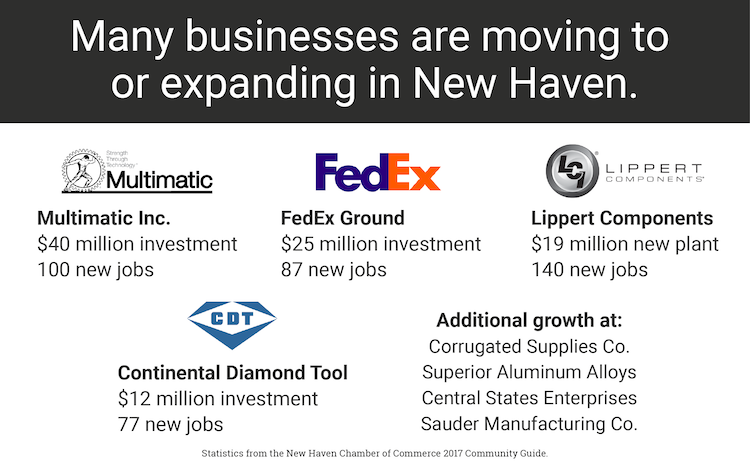 Just last year, companies like Sauder Manufacturing Co. from Grabill, Indiana, and Multimatic Inc., based in Canada, chose the city for their new facilities. And in the last five years, New Haven’s own Continental Diamond Tool has expanded three times.