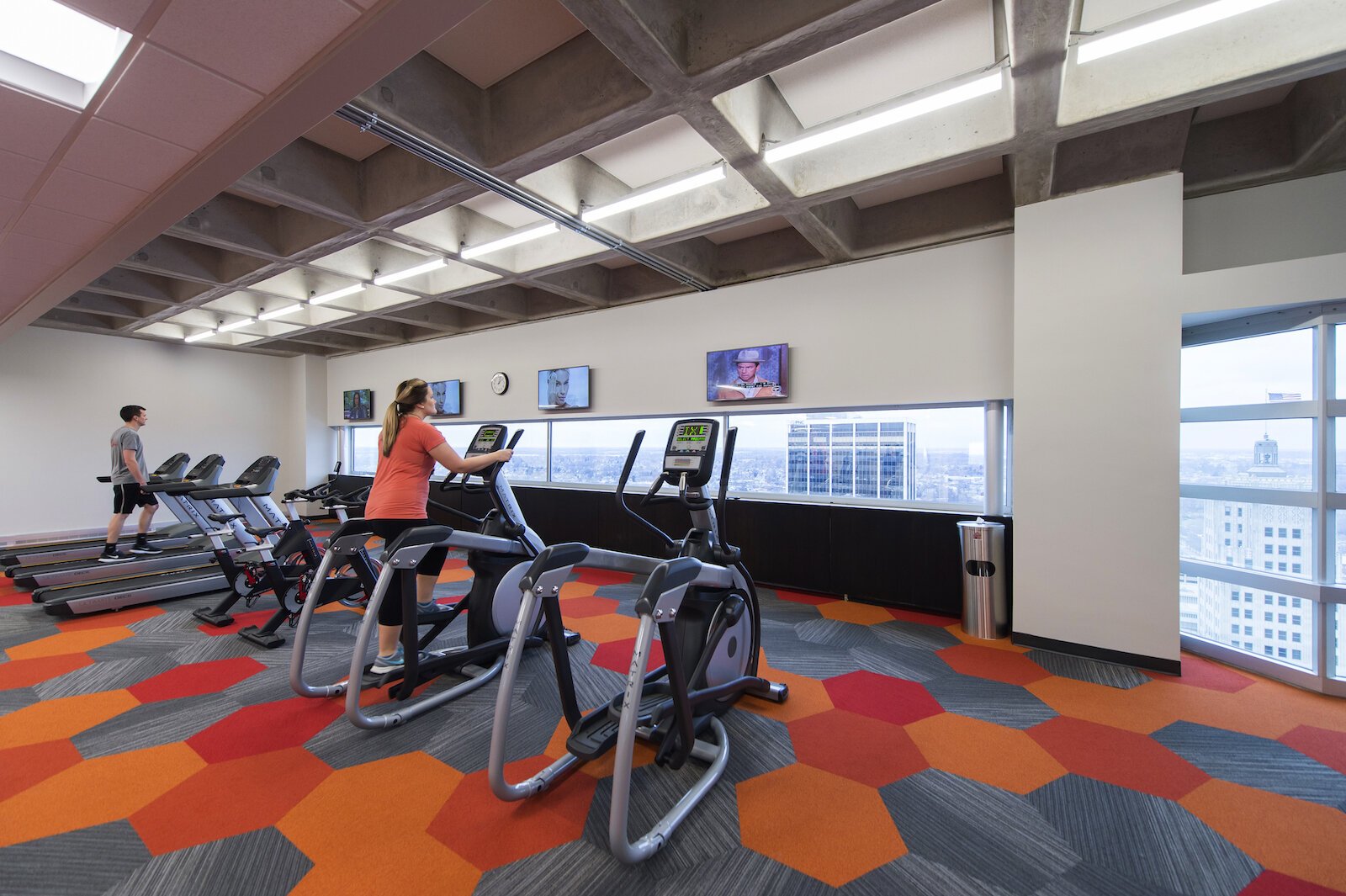 In its work with the Indiana Michigan Power Center’s Corporate Headquarters in Fort Wayne, Design Collaborative installed glass walls wherever possible to maximize access to natural light. The glass also added an element of openness to office spaces, making the entire setup more inviting. Additionally, the Design Collaborative team designed a fitness studio for employees that overlooked the outdoors, combining the physical influence of working out with the psychological influence of natural light to improve overall wellbeing.