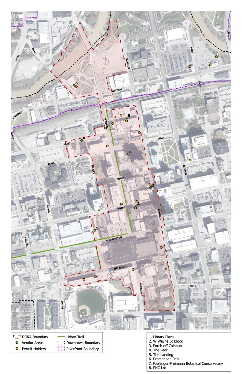 In July of 2023, the state of Indiana passed a law allowing municipalities to establish DORAs as a way to boost the local economy. Now, after receiving approval from the Fort Wayne City Council and the Indiana Alcohol & Tobacco Commission, Downtown Fort Wayne has a green light to implement the first DORA in the city, fittingly named the Downtown DORA. It will encompass much of the area between Promenade Park and Parkview Field, including the Landing.