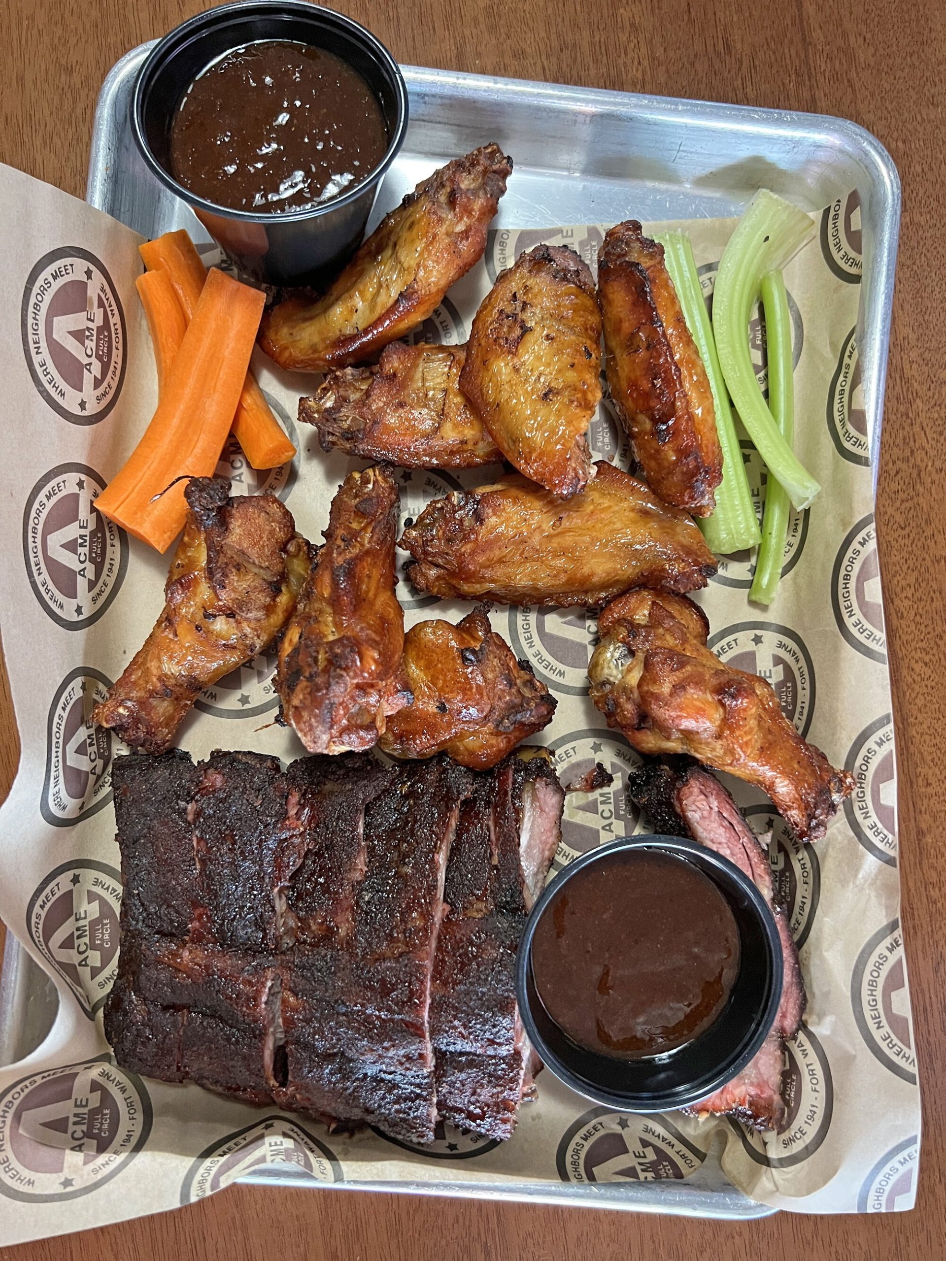 Smoked wings and baby back ribs from ACME by Full Circle BBQ.