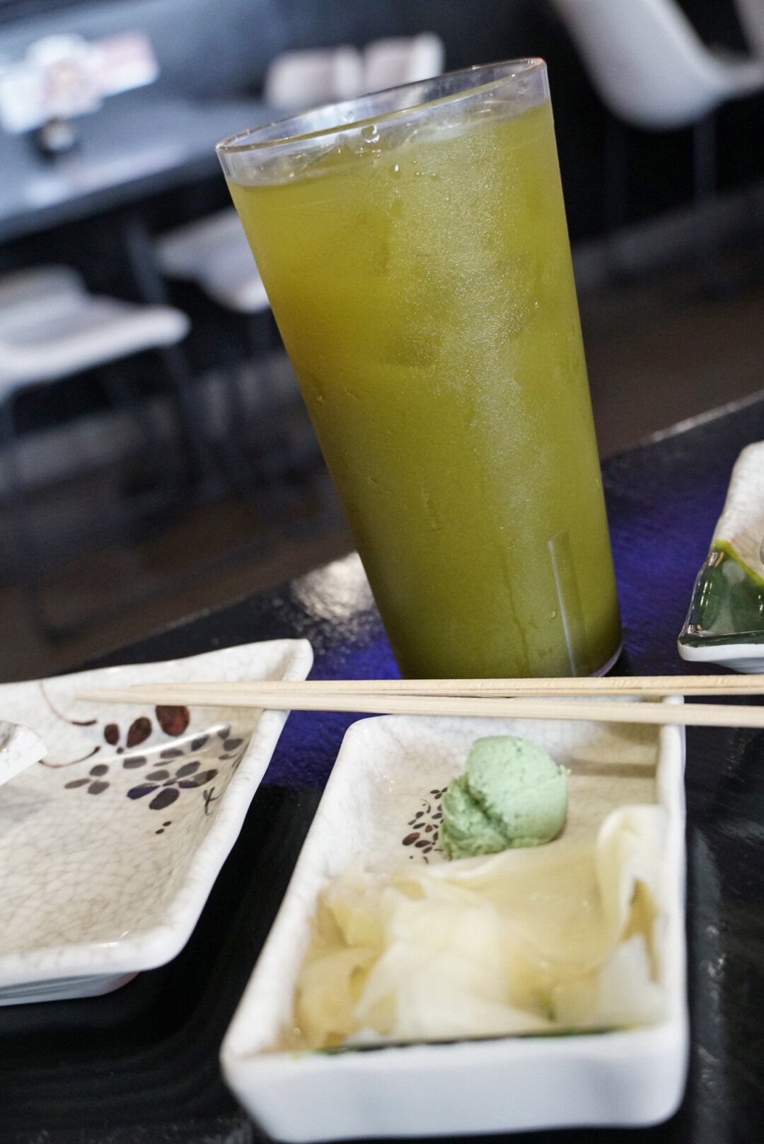 Since it’s lunchtime, I skip the sake. Instead, I sip on matcha iced tea between buoyant bites of tofu. The matcha is refreshing, earthy, and stunningly green.