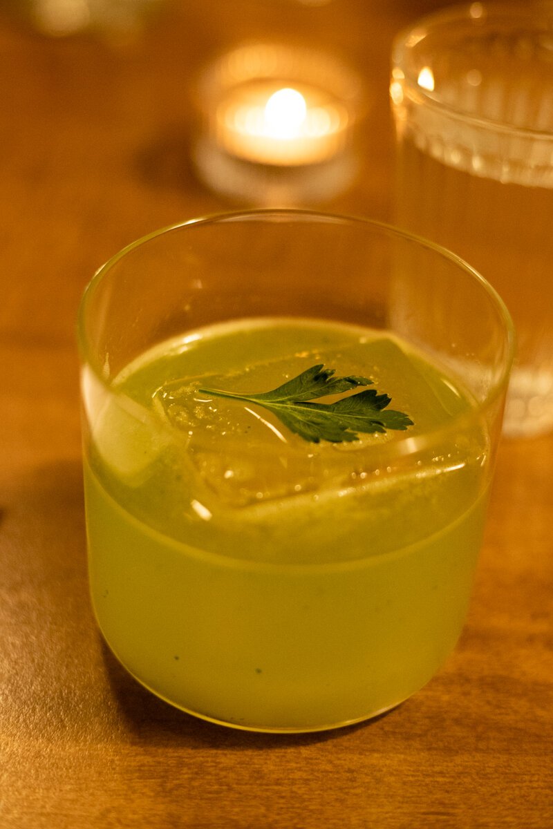 - Cocktail: Lillet Blanc, Galliano, limoncino, parsley, and lemon