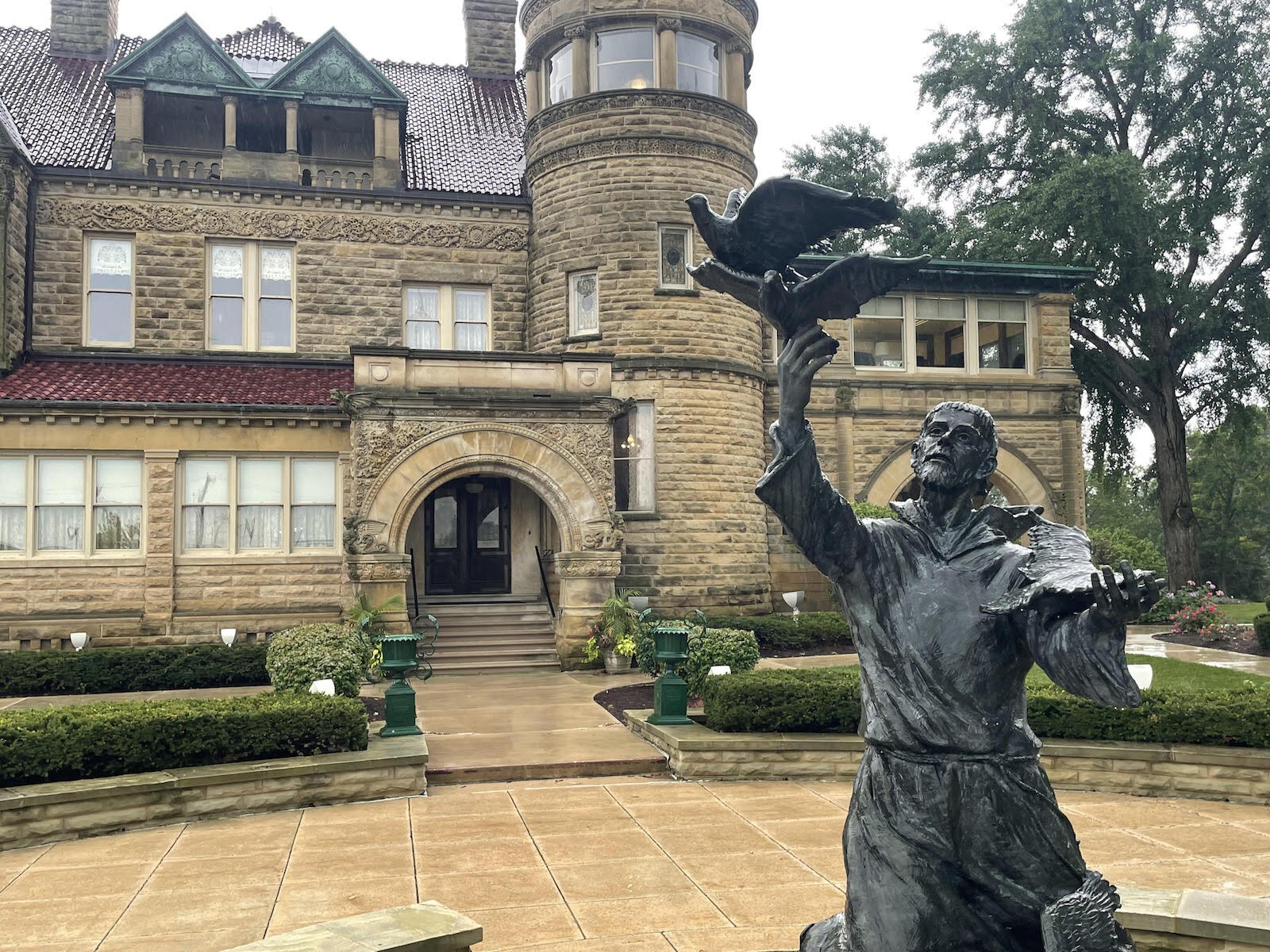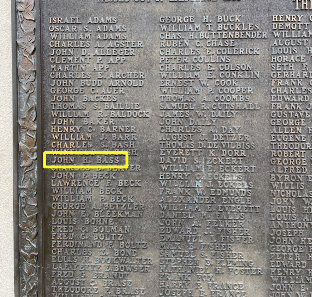 The next symbol on the map corresponded to a symbol on the monument, under which a list of boys who swam in the aqueduct is recorded. Name number 19 on that list of boys is John H. Bass, builder and former resident of Brookside—today’s headquarters of the University of Saint Francis.