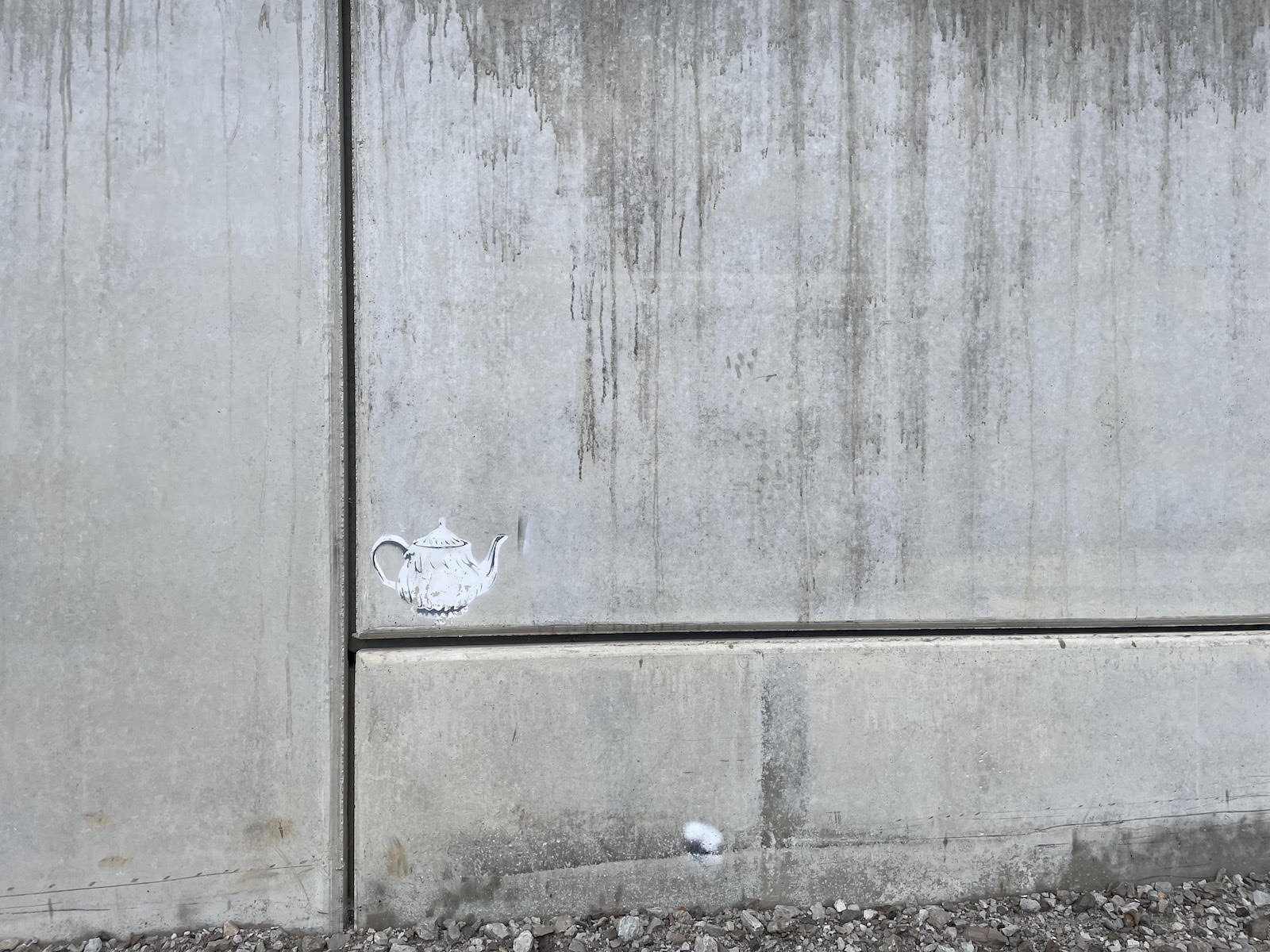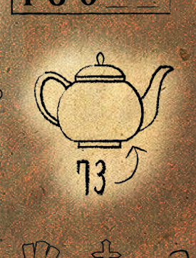 After some searching, they would have found the image of a teapot on a square slab of a bridge just before the train tracks. This symbol corresponded to the number 73 in the code area of the map.