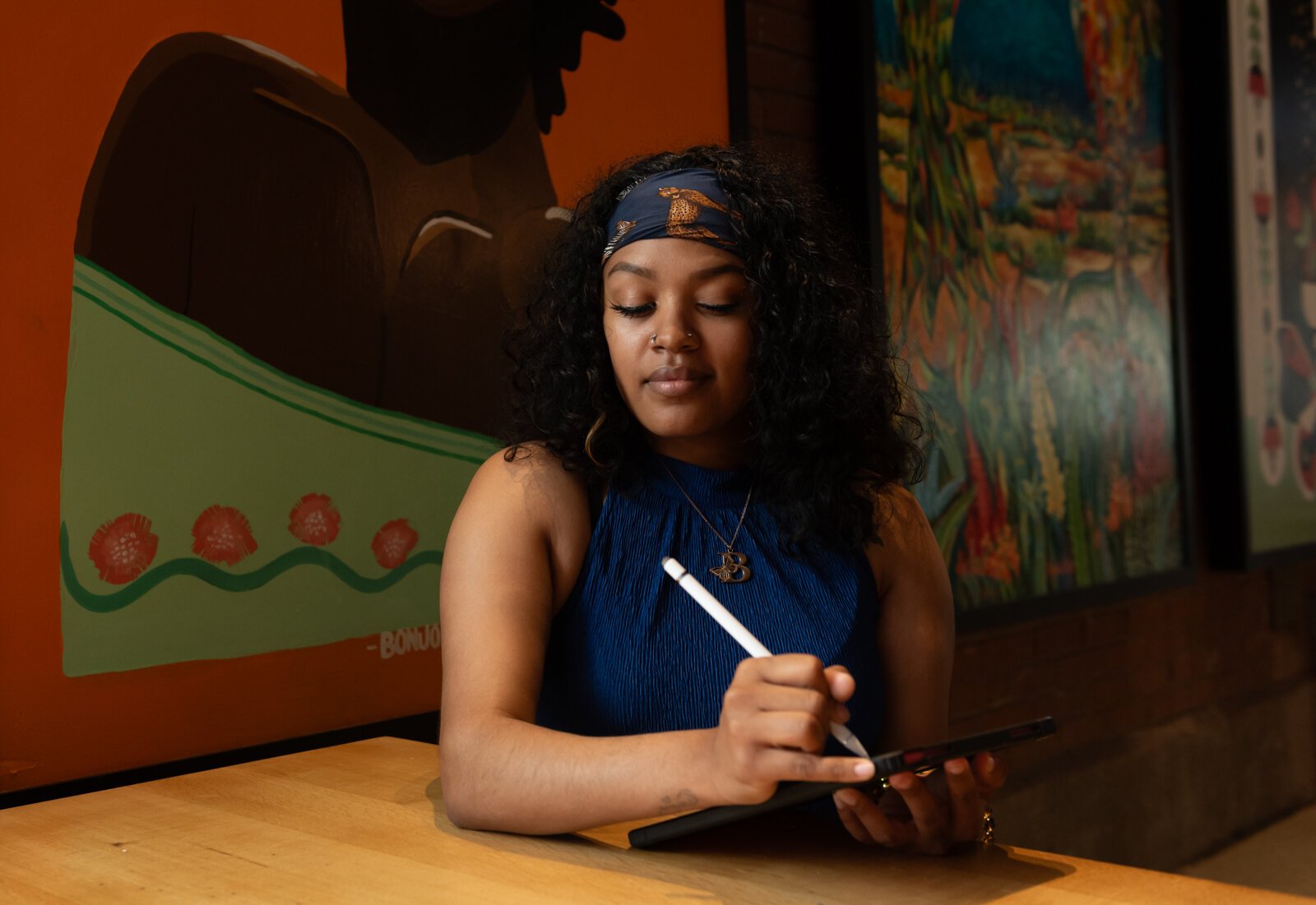 Artist BonJo sketches on her iPad.