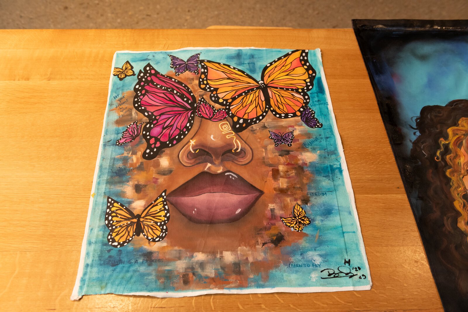 “If you want to survive and live off your art, you have to go hard and it’s not a nine to five, it’s a twenty-four-seven or twenty-five-eight,” BonJo says. “I started out as a painter. I grew into it, but I also want to become a businesswoman in the art world, so I can live and work off my art.”