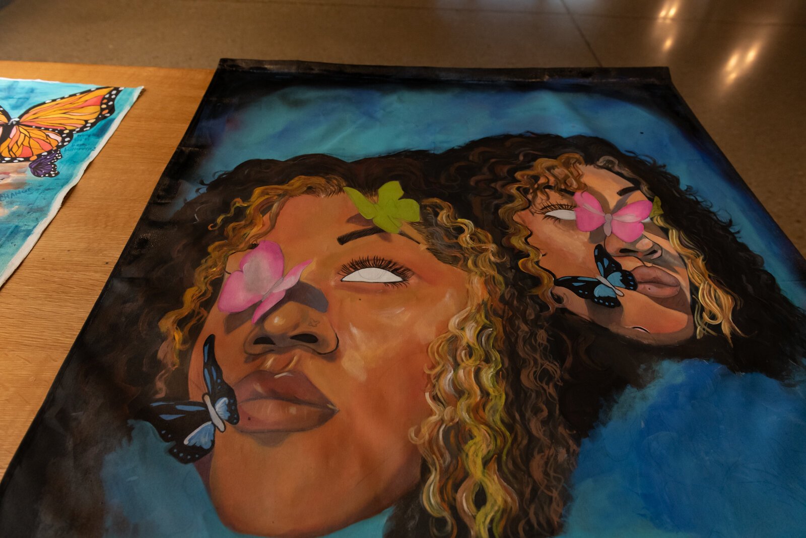 “I’m Afro-Latino, so I got into self-portraits because I wanted to embrace who I was,” she says. “Being biracial is hard– some people think it’s an advantage, but it’s hard when you’re trying to identify yourself. Being a painter helped me identify who I am….being able to express myself through my art has helped me just embrace who I am and my culture.”
