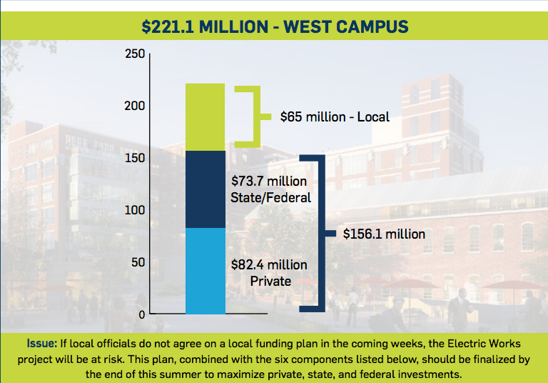With the entire project at stake, Thomas encourages the public to show their support for Electric Works. The public dollars put into it are expected to be made back in tax revenue in 12 years, and he thinks plans for its public market, in particular, makes the project worth a taxpayer investment.