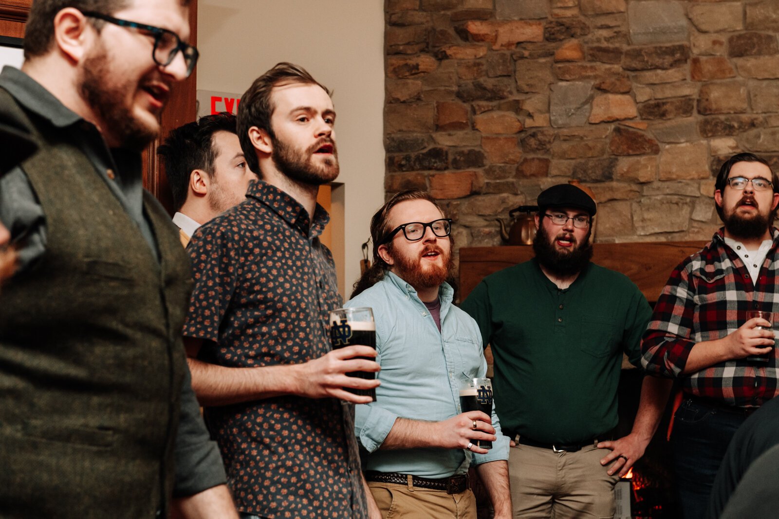 From left: Oscar Matter, Jonathan Casey, Stephen Stachofsky, and Braxton Matthews of the Ragtag Bunch sing during a performance at J.K. O’ Donnell’s on February 24, 2022.