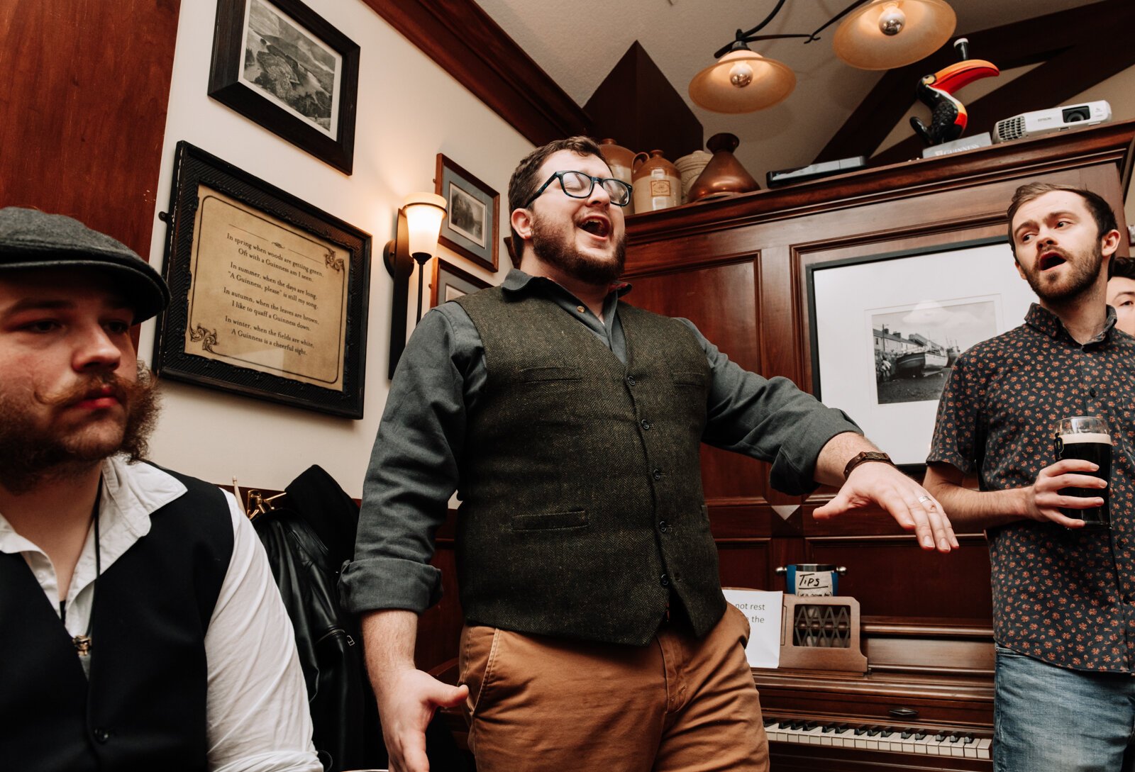 Instead, he started working as a server at local restaurants—first, the now-closed Caliente on Wayne Street Downtown, and later the Irish pub, J.K. O’Donnells, across the street. In recent years, inspired by fellow musical friends he’s met around town, Stachofsky has helped launch a group called the Ragtag Bunch, which casually performs Irish folk music and sea shanties at Fort Wayne area pubs. They’ve even released a locally produced album on Spotify.