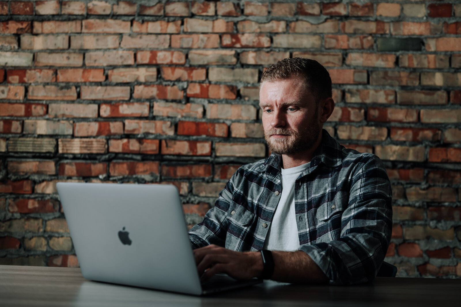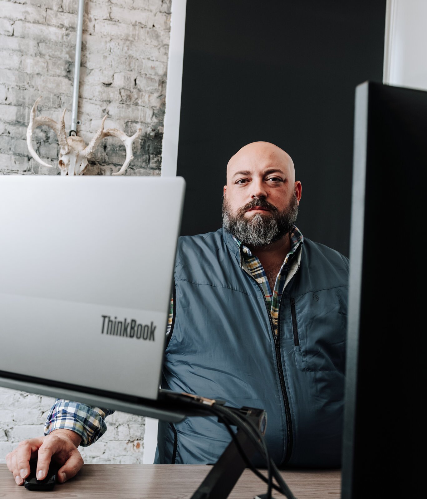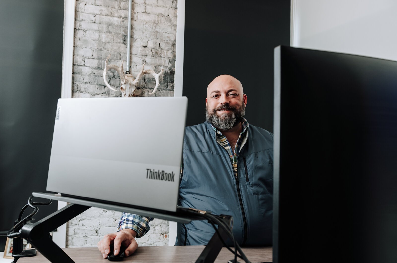 Rachel Von Stroup – Shane Araujo, President/Co-Founder of 3BG SUPPLY CO. works in his office on The Landing in Fort Wayne, IN.