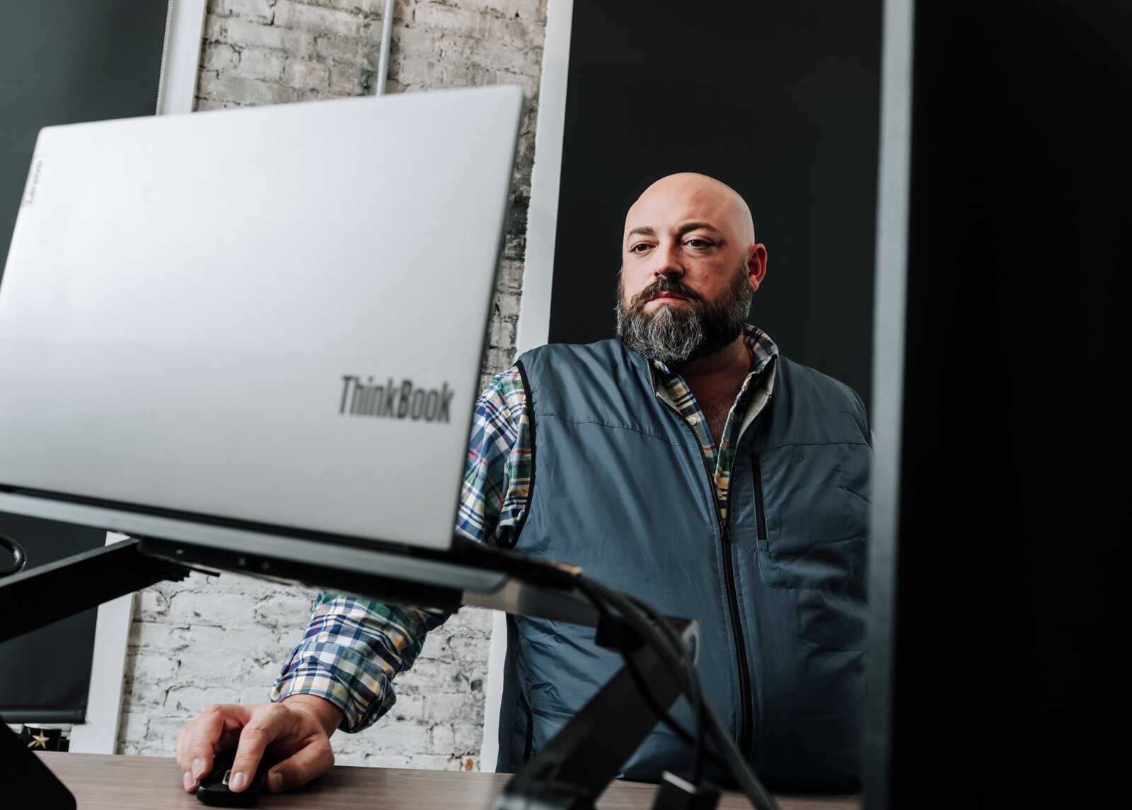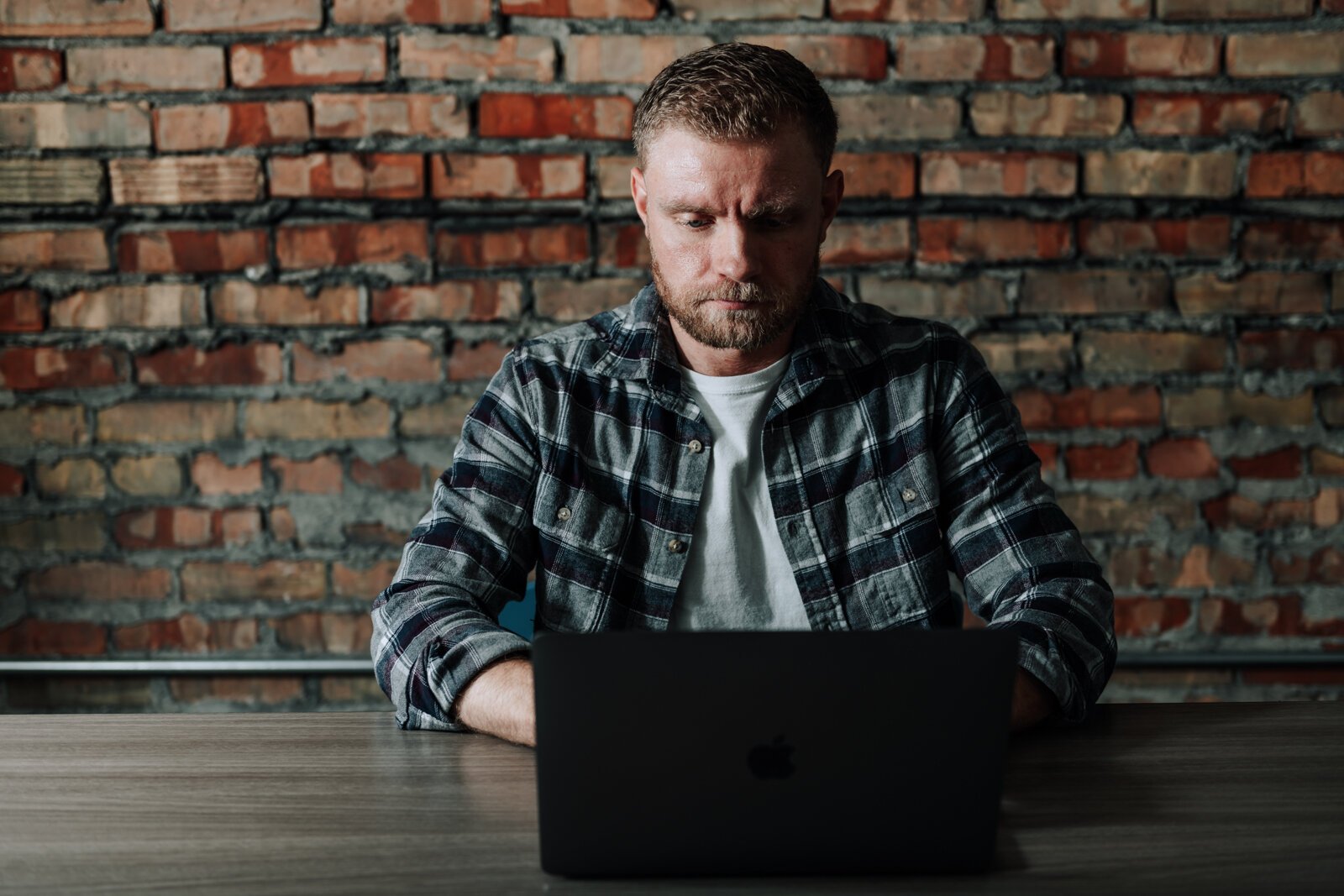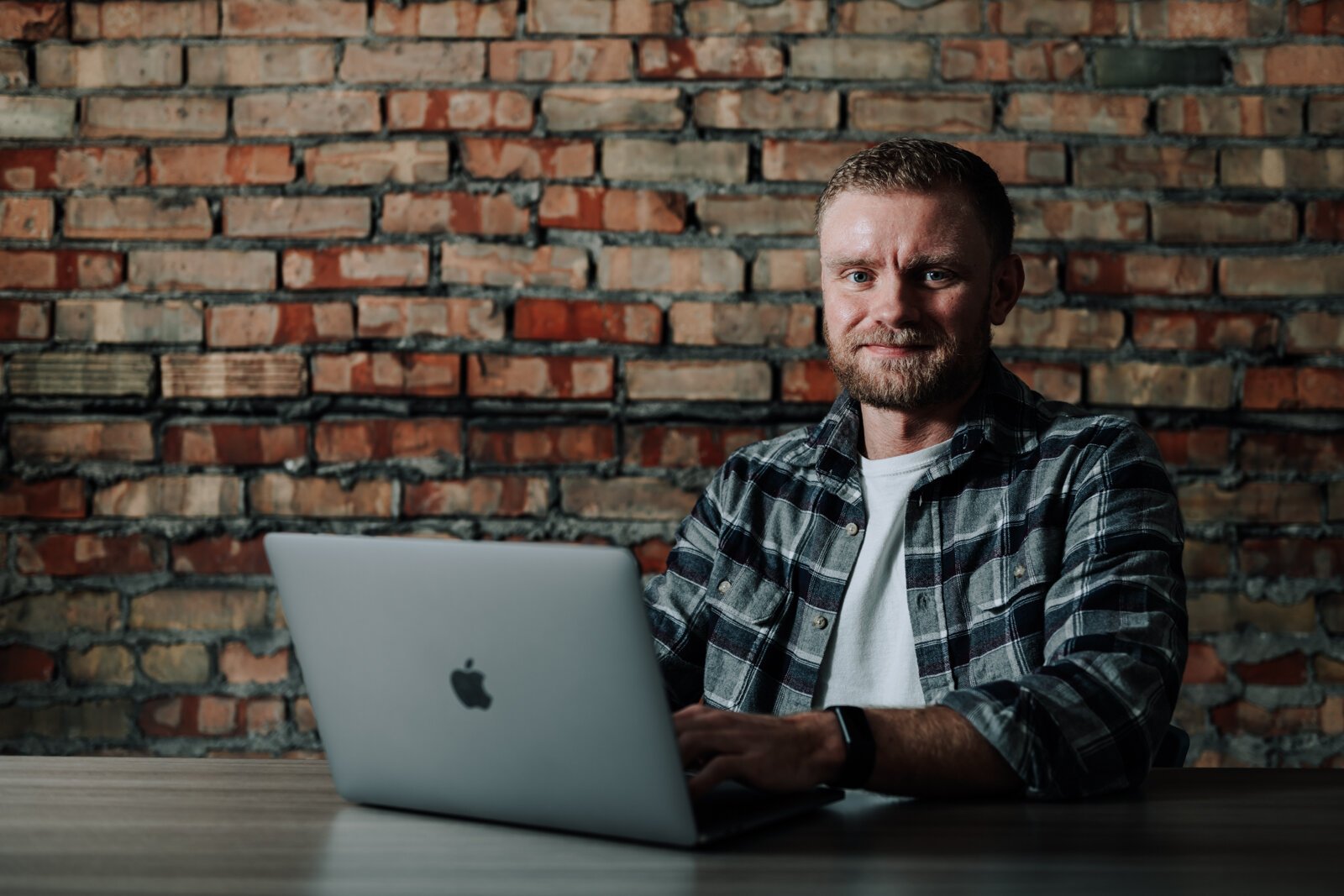 Rachel Von Stroup – Shane Araujo, President/Co-Founder of 3BG SUPPLY CO. works in his office on The Landing in Fort Wayne, IN.