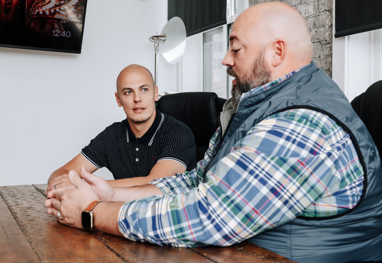 Rachel Von Stroup – Shane Araujo, President/Co-Founder, right, and Alex Smith, CEO/Co-Founder of 3BG SUPPLY CO. have a meeting.