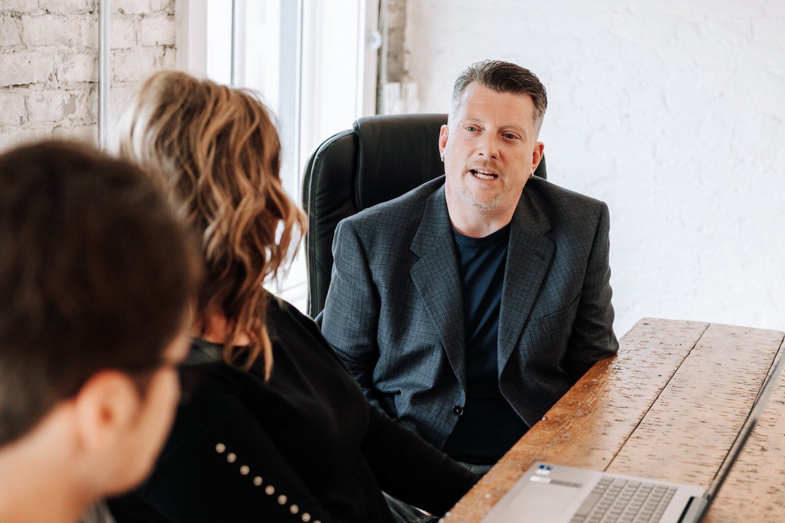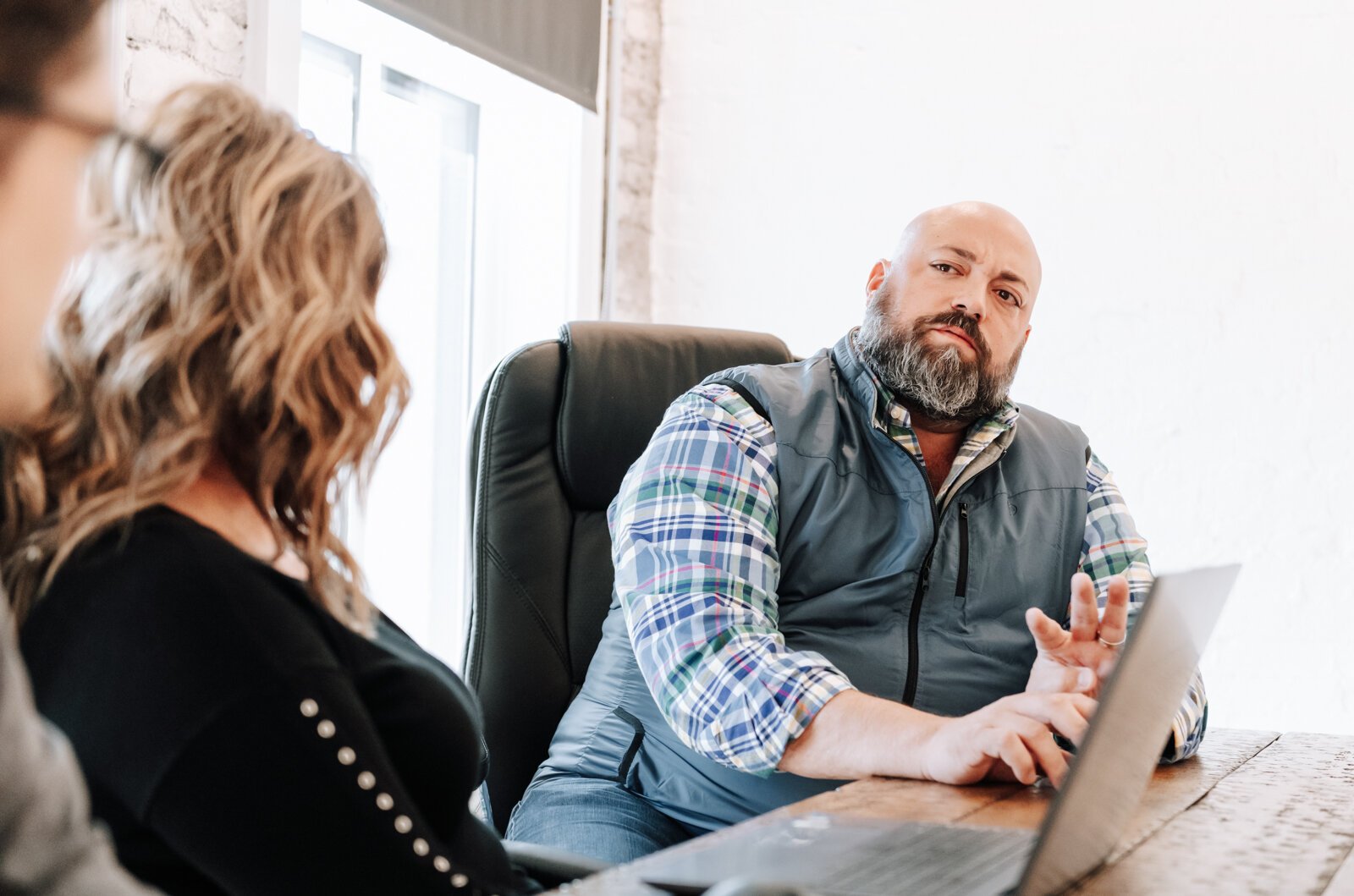 Rachel Von Stroup – Jeremy Winters, Account Executive speaks to other team members during a meeting at 3BG SUPPLY CO.