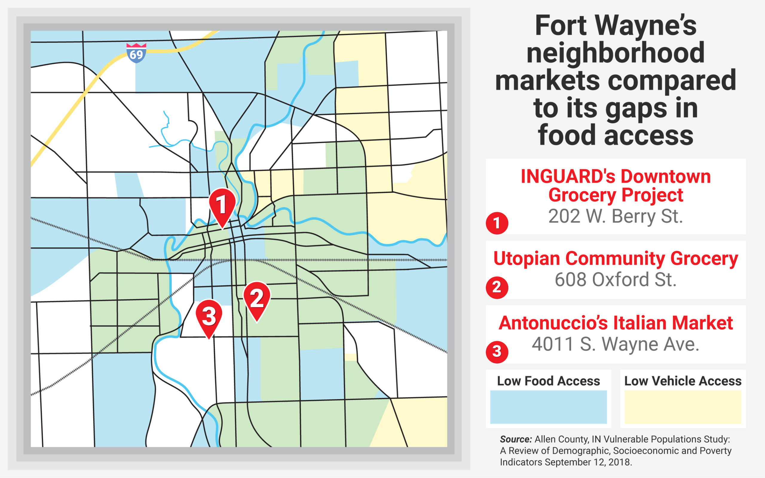 Since many Southeast Fort Wayne residents do not have access to personal vehicles, theyāre forced to buy food close to home wherever they can find it. Even if they do drive to the nearest Walmart or Kroger, those national chains donāt carry as healthy or as many products in their south side stores as they do in other local stores, Simmons adds.