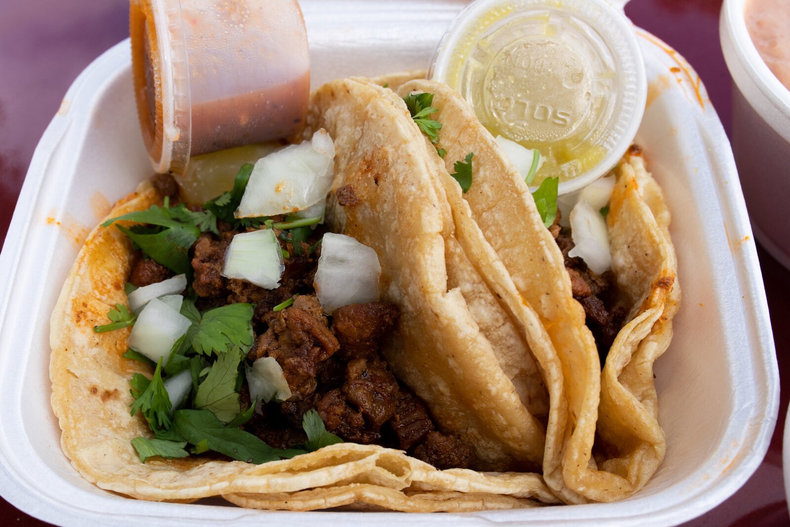 You can find delicious, authentic street tacos at the Marathon Gas Station.