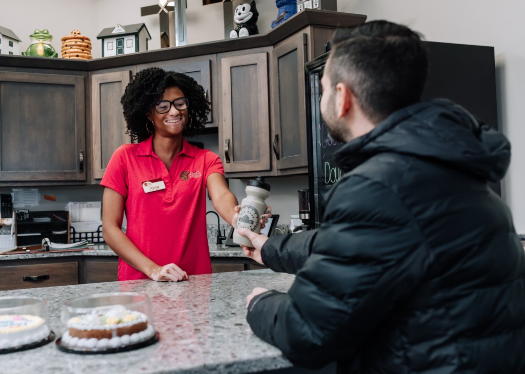 “We’ve got an older gentleman who comes every morning,” she says, “and he will park his car. He goes for his daily walk, and he comes and gets his cookie.”