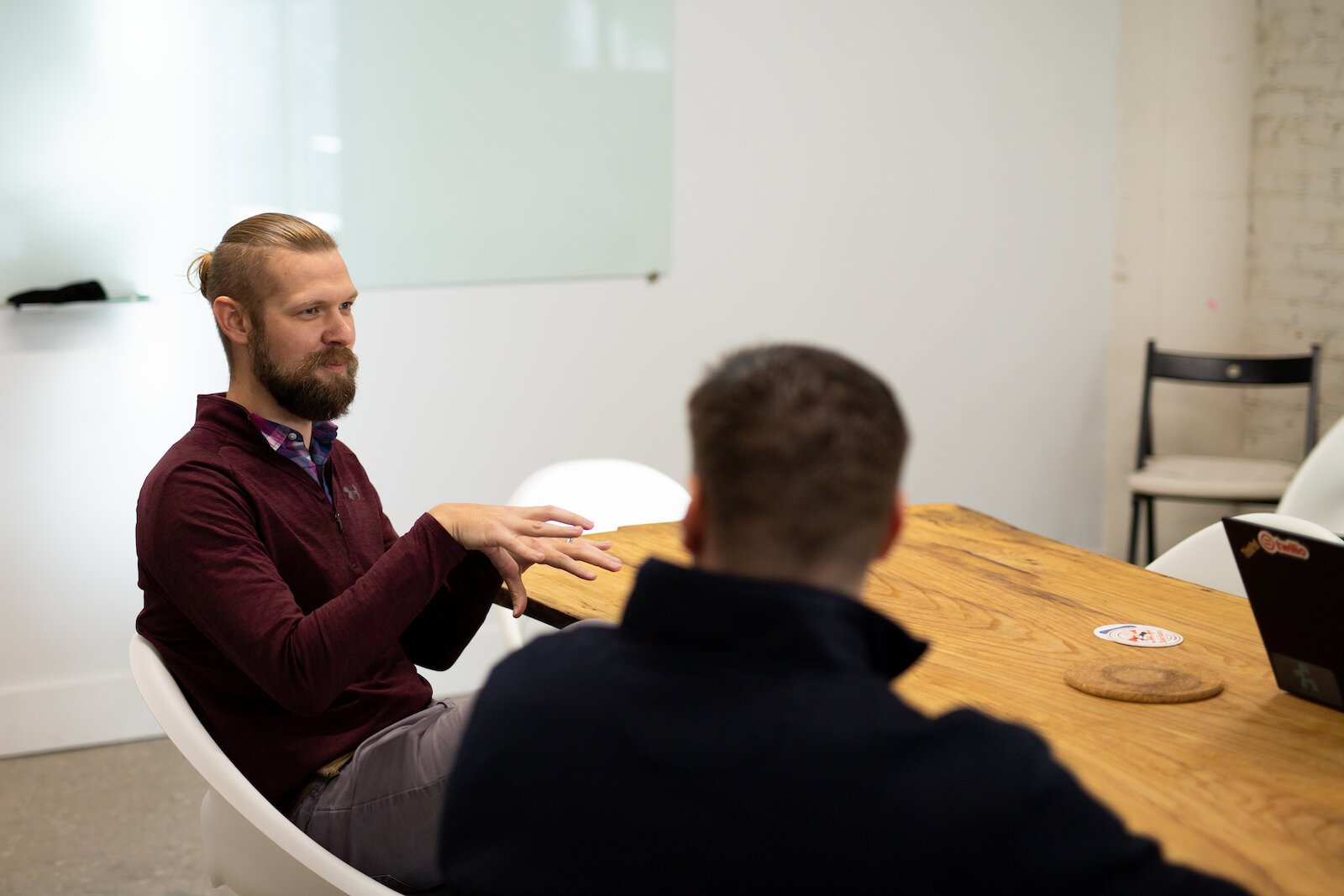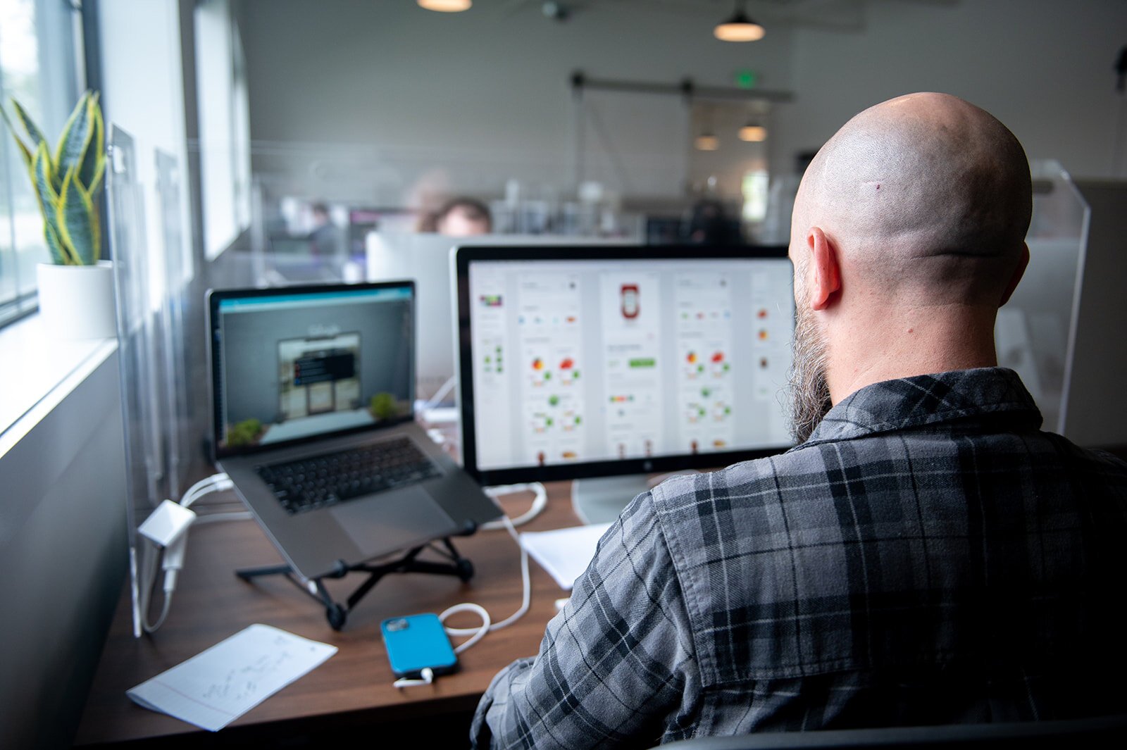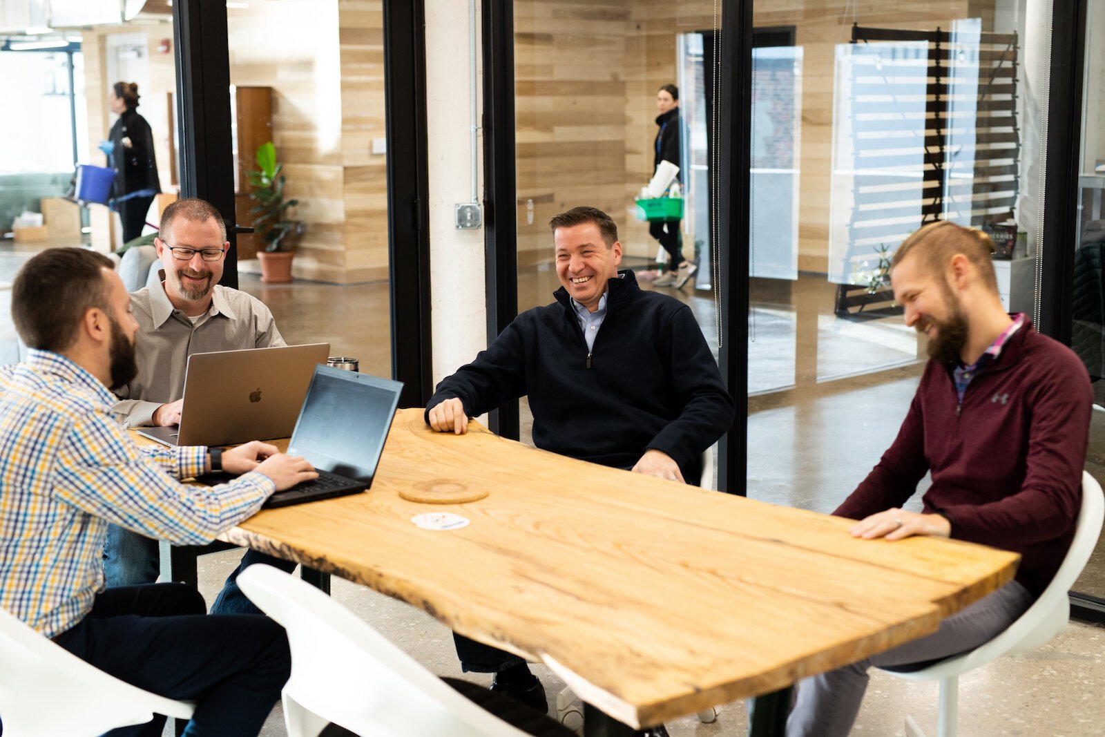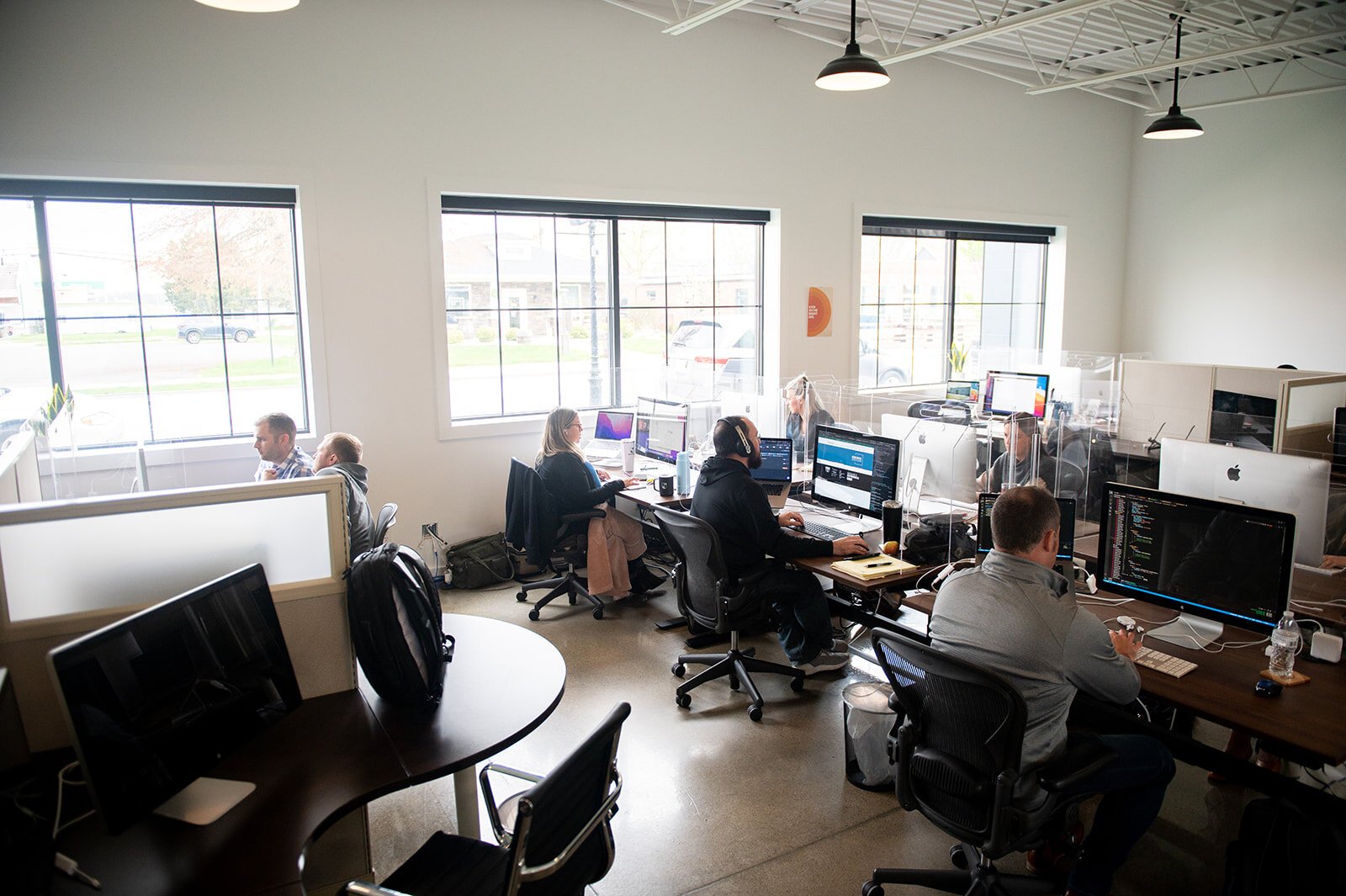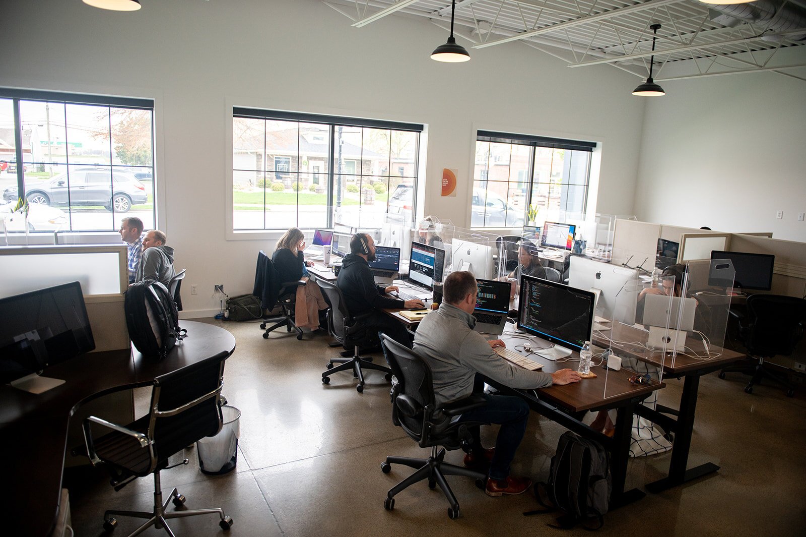“We stripped out all of the dedicated offices and removed all of the personalization, and told everyone: Come get your stuff,” Nate says. “Now, our office looks like a coworking space, and the rule is, you can’t sit at the same desk two days in a row, so it encourages people to mingle.”