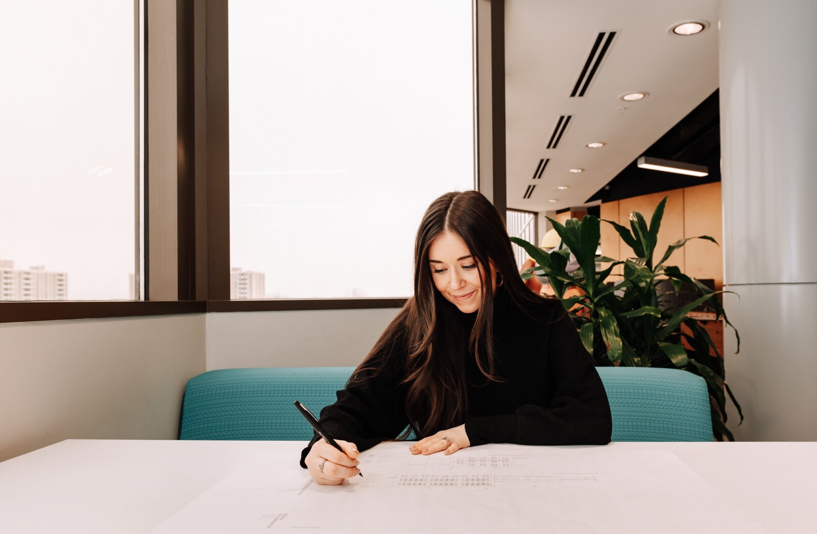 “More people are doing their heads down, focused work at home, and then coming into the office for more collaborative group or teamwork, so everyone doesn’t need to have that dedicated workspace in the office anymore,” Elliott says. “Instead, we’re designing more offices where you come in, and pick where you want to work for the day, whether its a private bench workspace or a more public communal setting.”