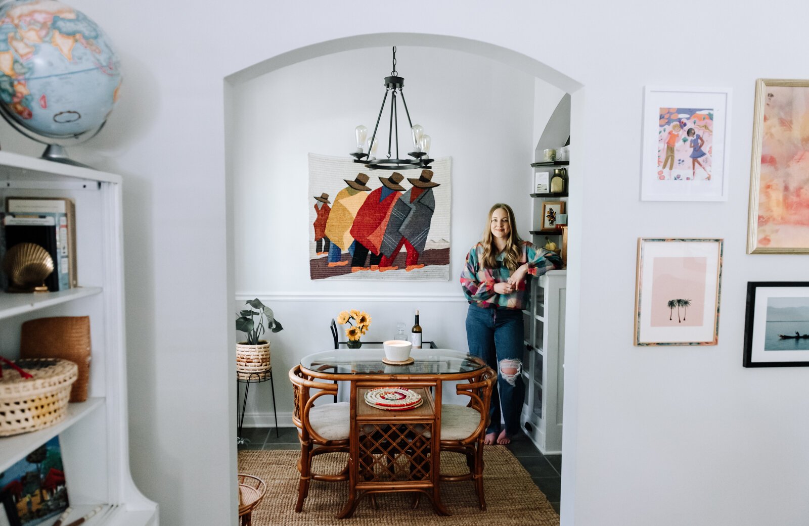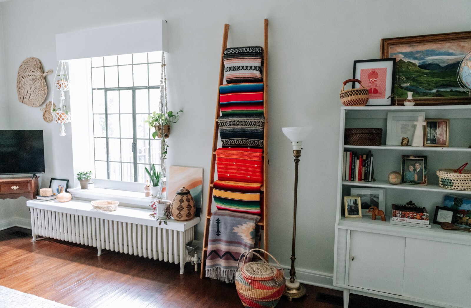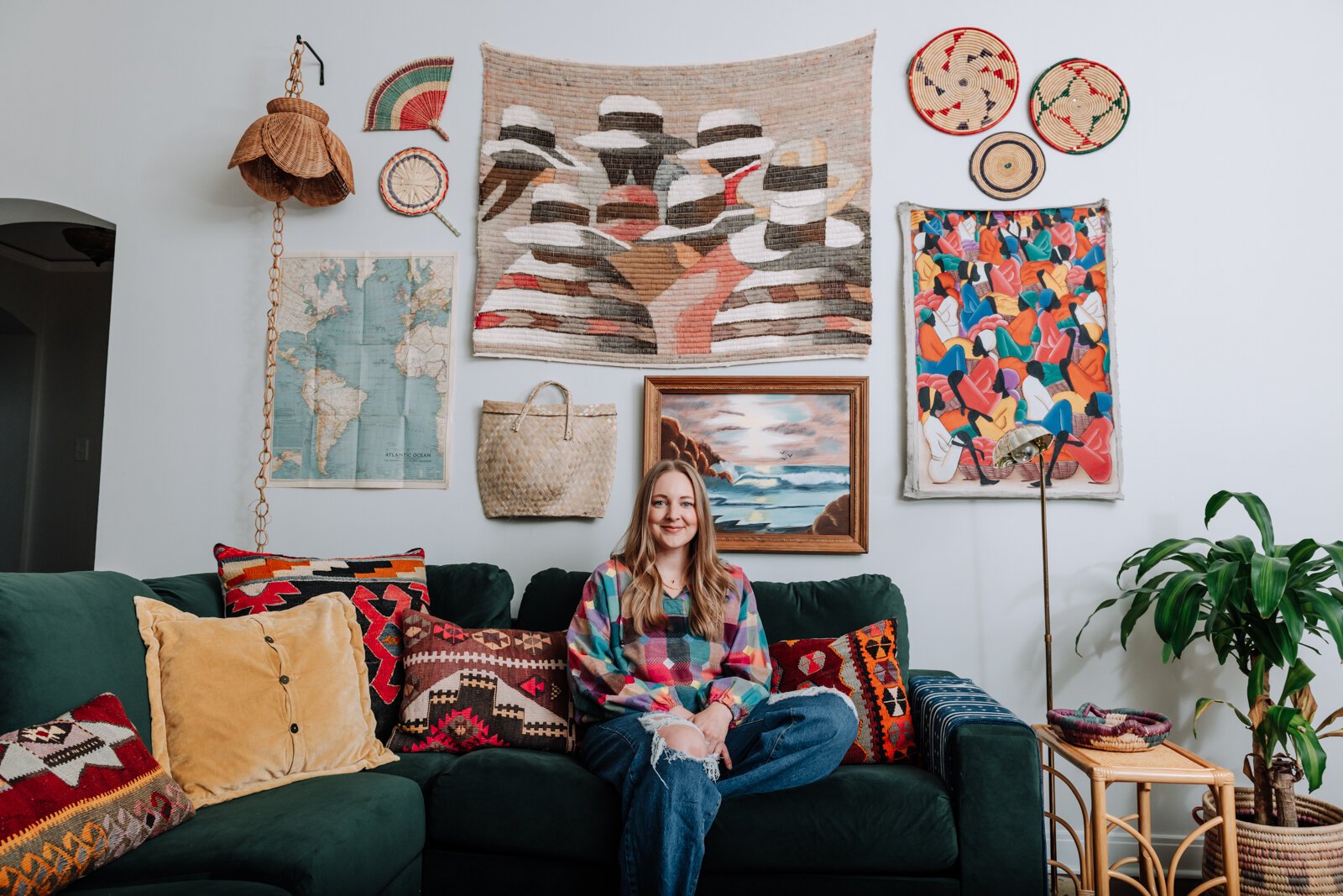 When Jamie Curtis moved back to Fort Wayne in 2019, she knew she wanted to live near Downtown; she just didn’t know where. When a former cigar-factory-turned-apartment opened up on the Riverfront along Edgewater Avenue, she couldn’t resist jumping on it. Today, her historic home is inspired by her travels from Haiti to Mexico, Nicaragua, and the Dominican Republic, giving the space an eclectic, vintage, and bohemian vibe.