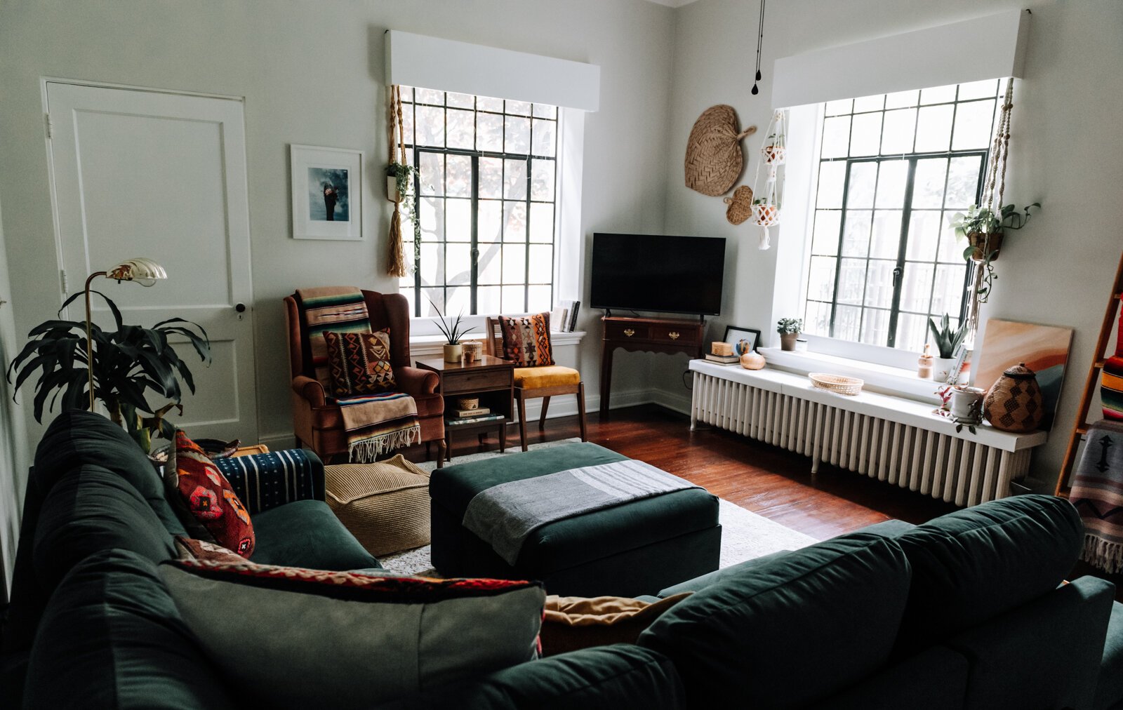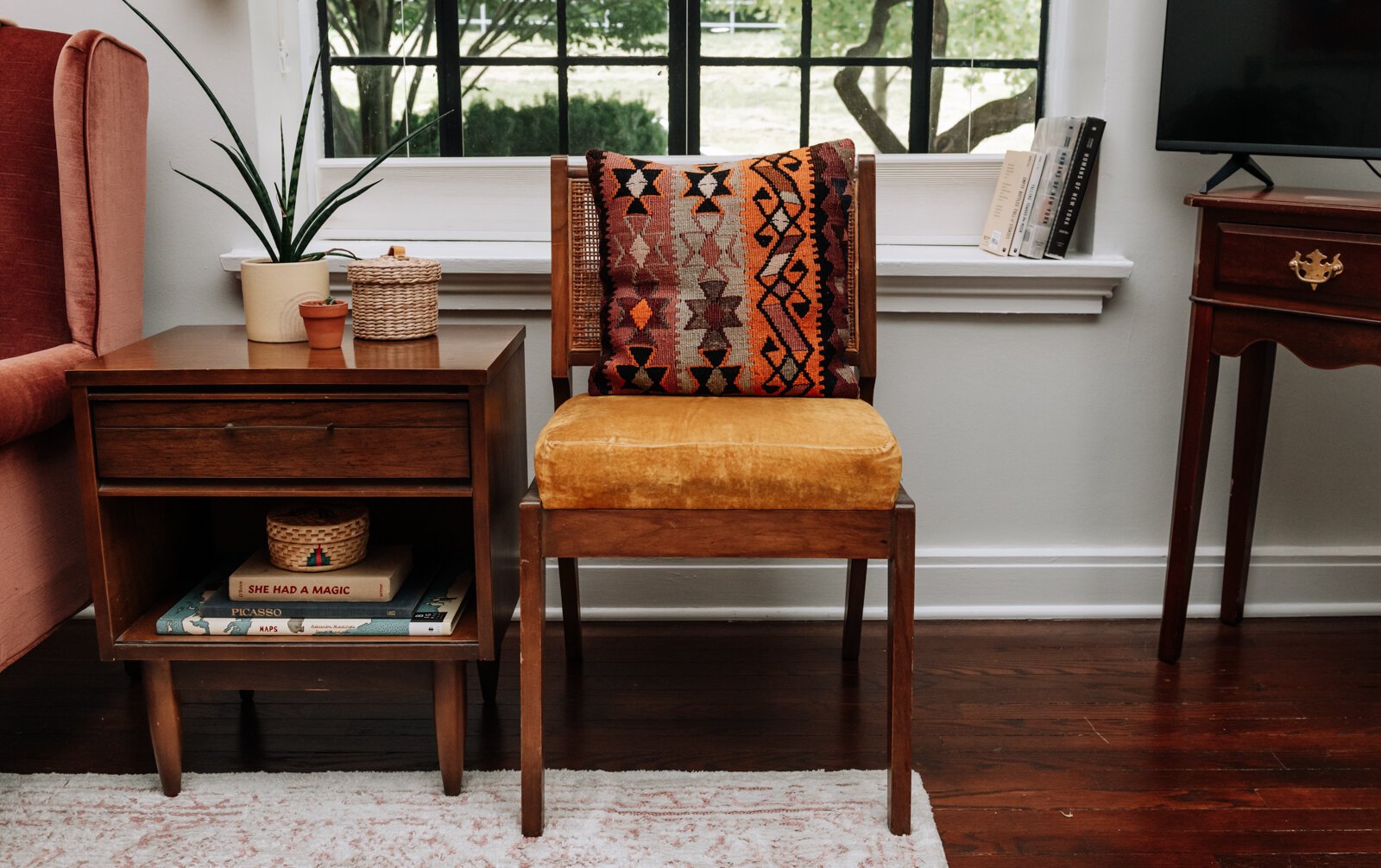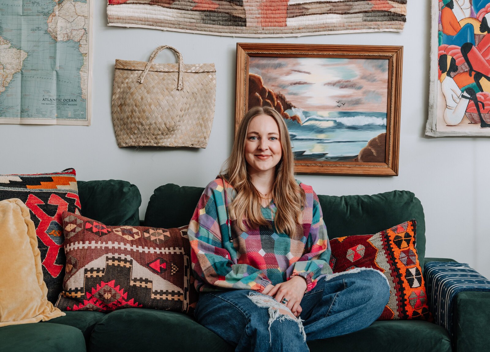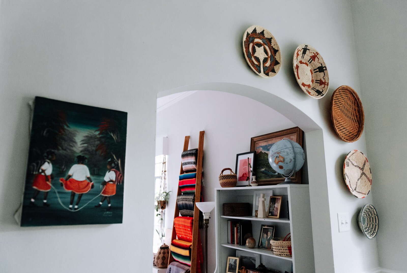 When Jamie Curtis moved back to Fort Wayne in 2019, she knew she wanted to live near Downtown; she just didn’t know where. When a former cigar-factory-turned-apartment opened up on the Riverfront along Edgewater Avenue, she couldn’t resist jumping on it. Today, her historic home is inspired by her travels from Haiti to Mexico, Nicaragua, and the Dominican Republic, giving the space an eclectic, vintage, and bohemian vibe.