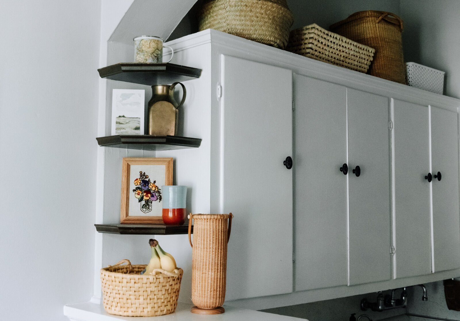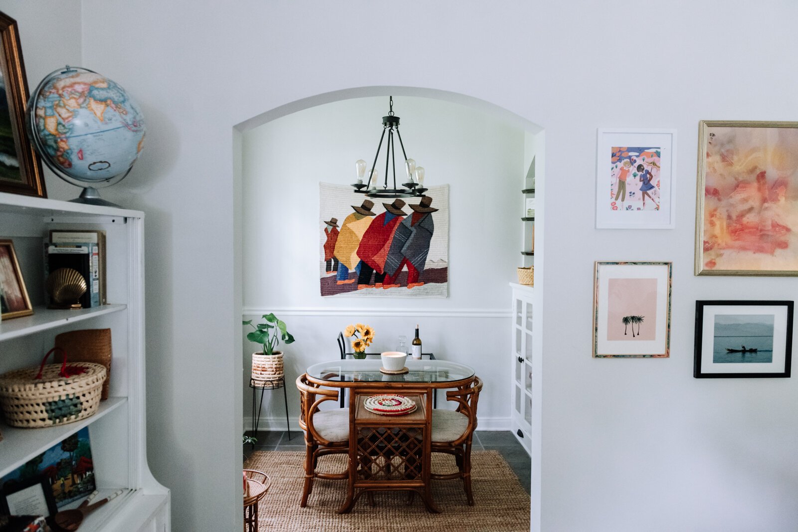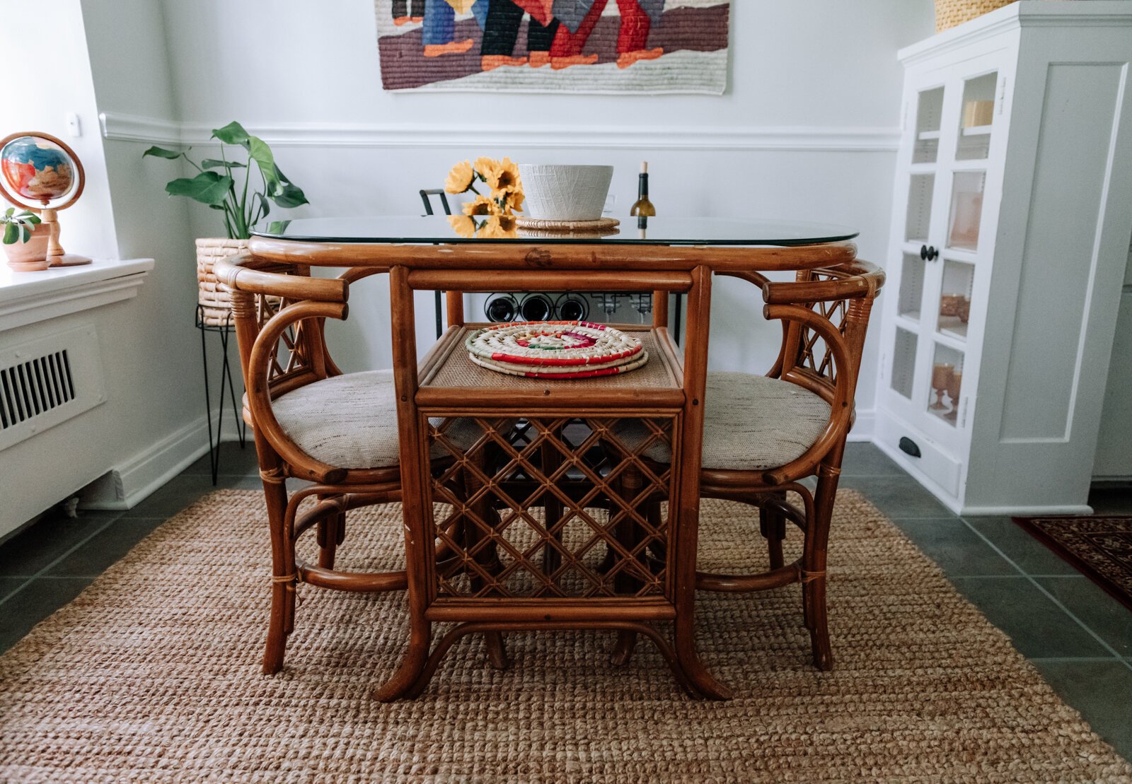 JC: One design challenge has been the kitchen, as it’s such a small space. Slowly, but surely, I’ve been able to thrift some of the perfect pieces, including my vintage rattan honeymoon dining set. It’s the perfect fit for my small dining area.
