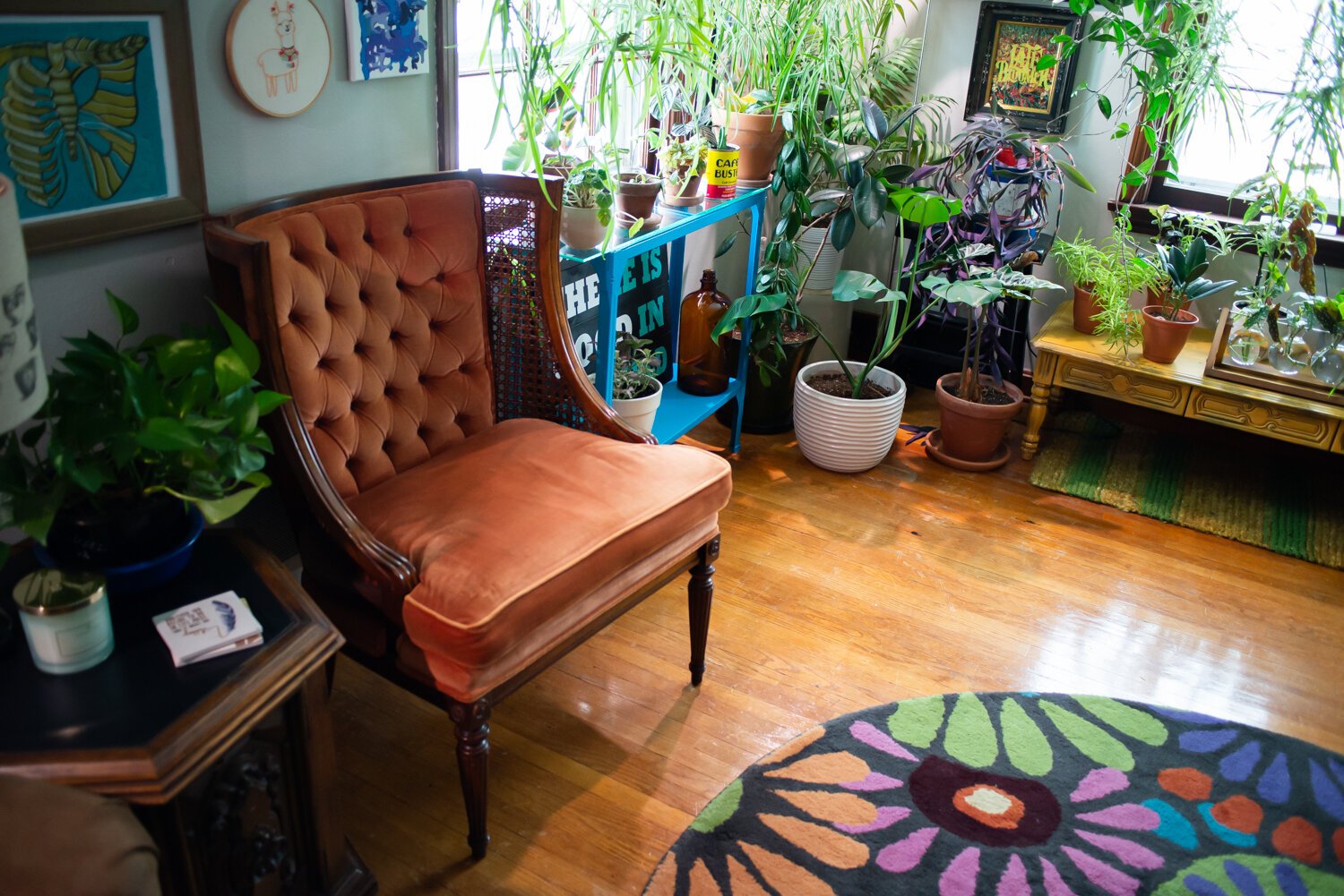 ON: My friends are the biggest source of inspiration. With very few exceptions, all the art on our walls was created or gifted by people we know and love. We both moved into our home with several houseplants, and our collection has grown quite a bit over the last 18 months. Most of our furniture was free or thrifted, which contributes to the eclectic vibe.