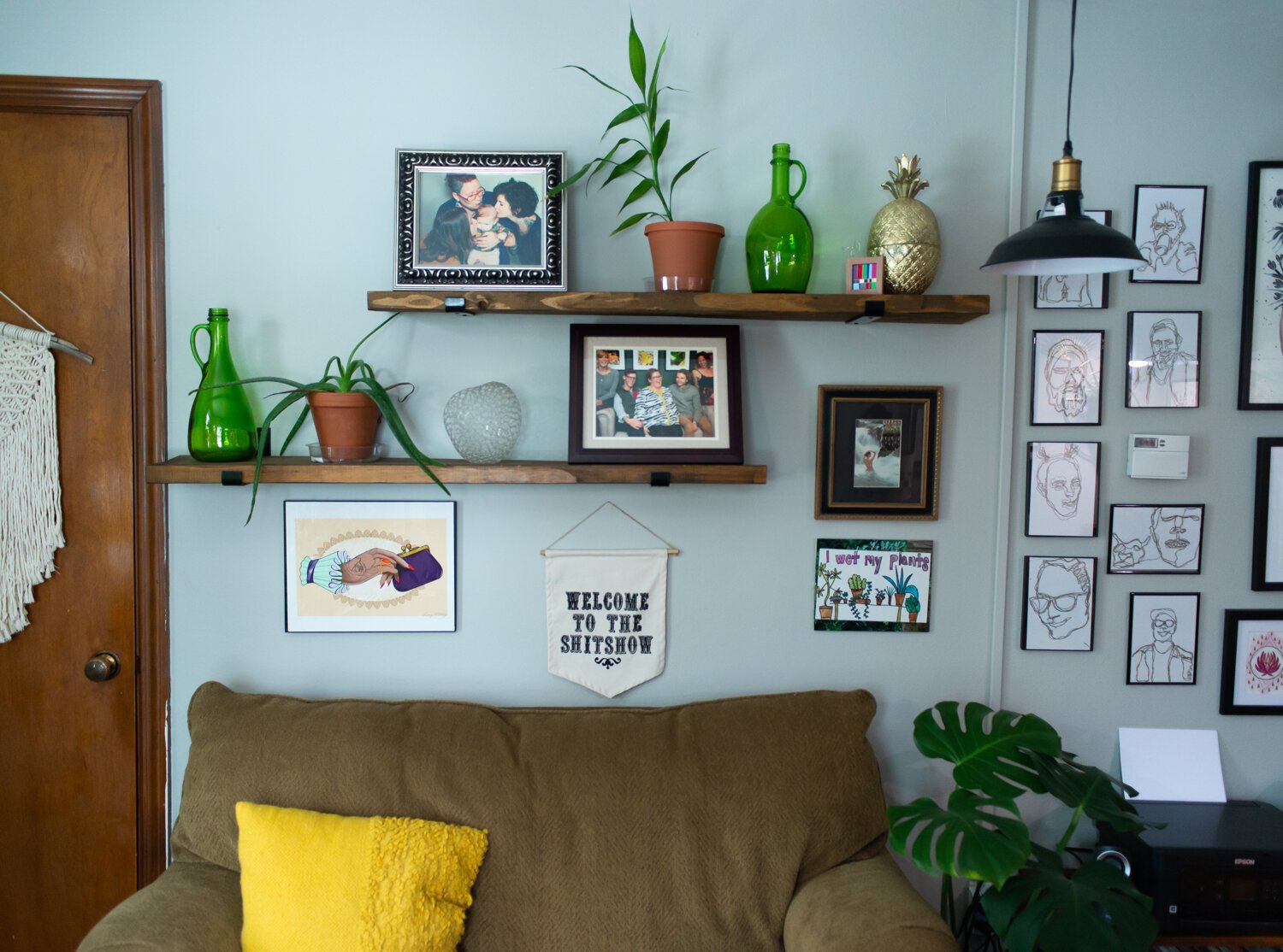 By Rachel Von Stroup – A variety of art, mainly from artists the roommates know, decorates the wall.