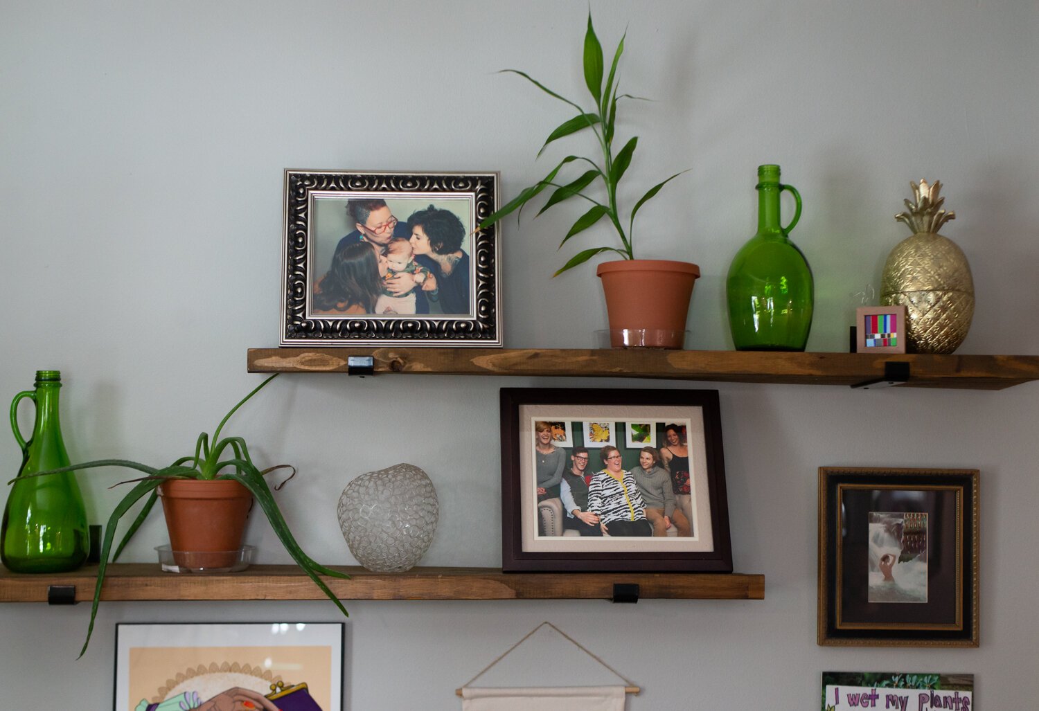 Floating shelves are a feature at the home of Katie Jo and Tobi Newson.