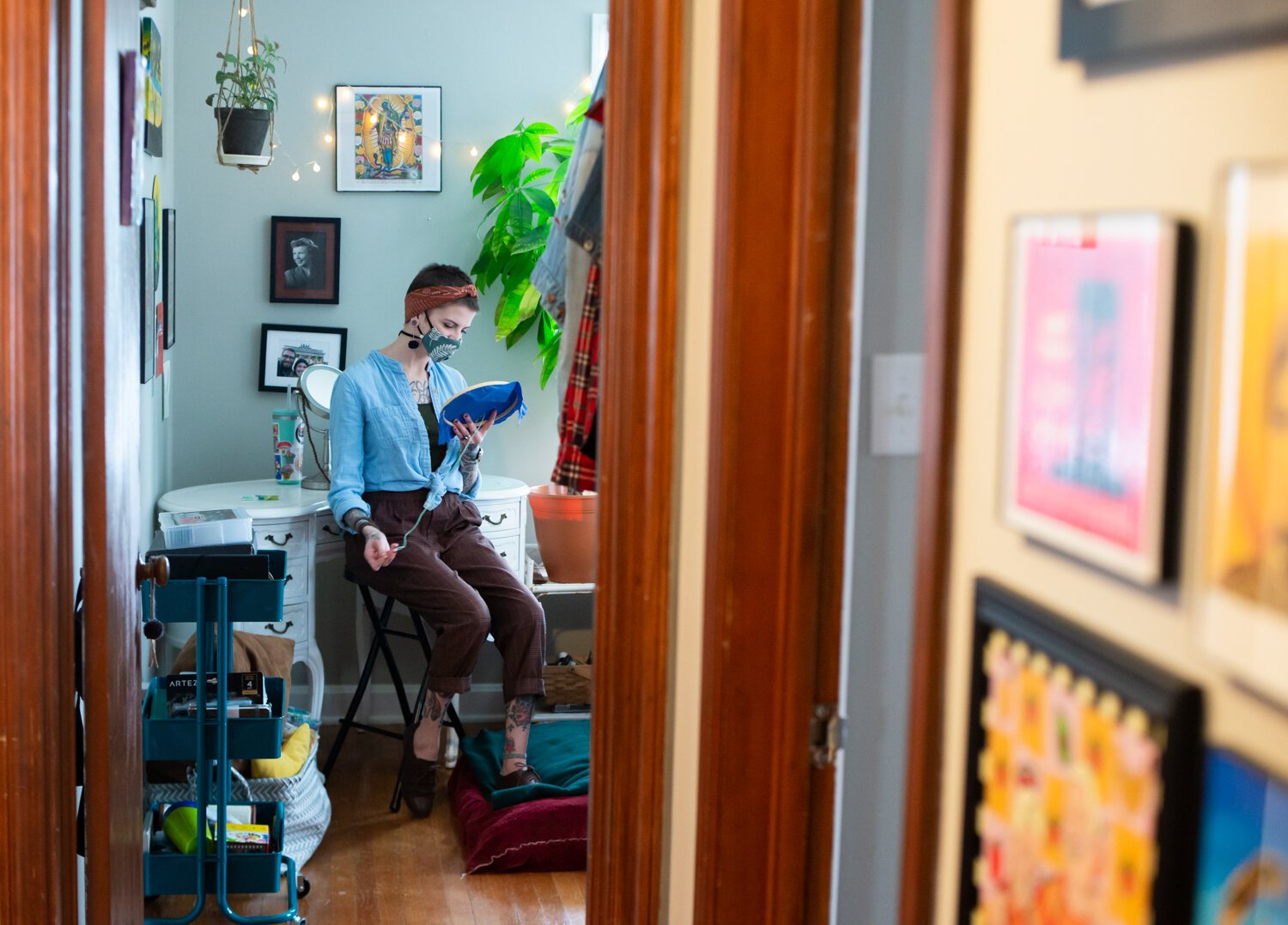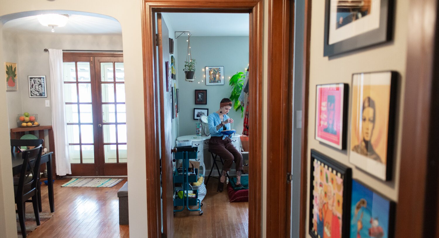 By Rachel Von Stroup – 8. Tobi Newson works on embroidery at home.