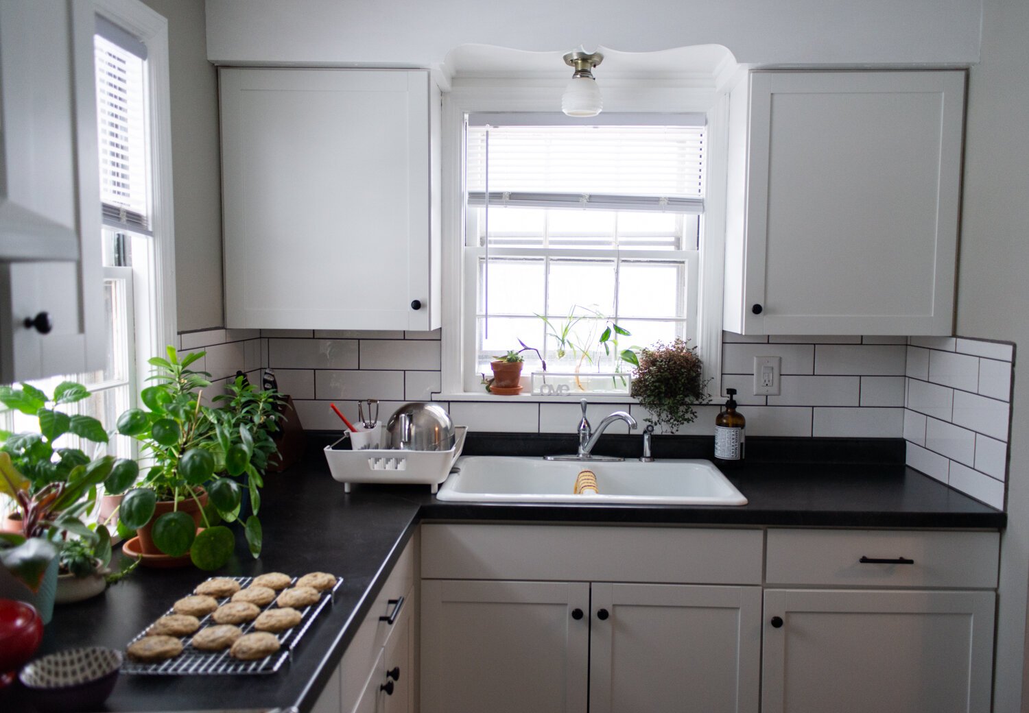 The kitchen is filled with natural light at the home of Katie Jo and Tobi Newson.