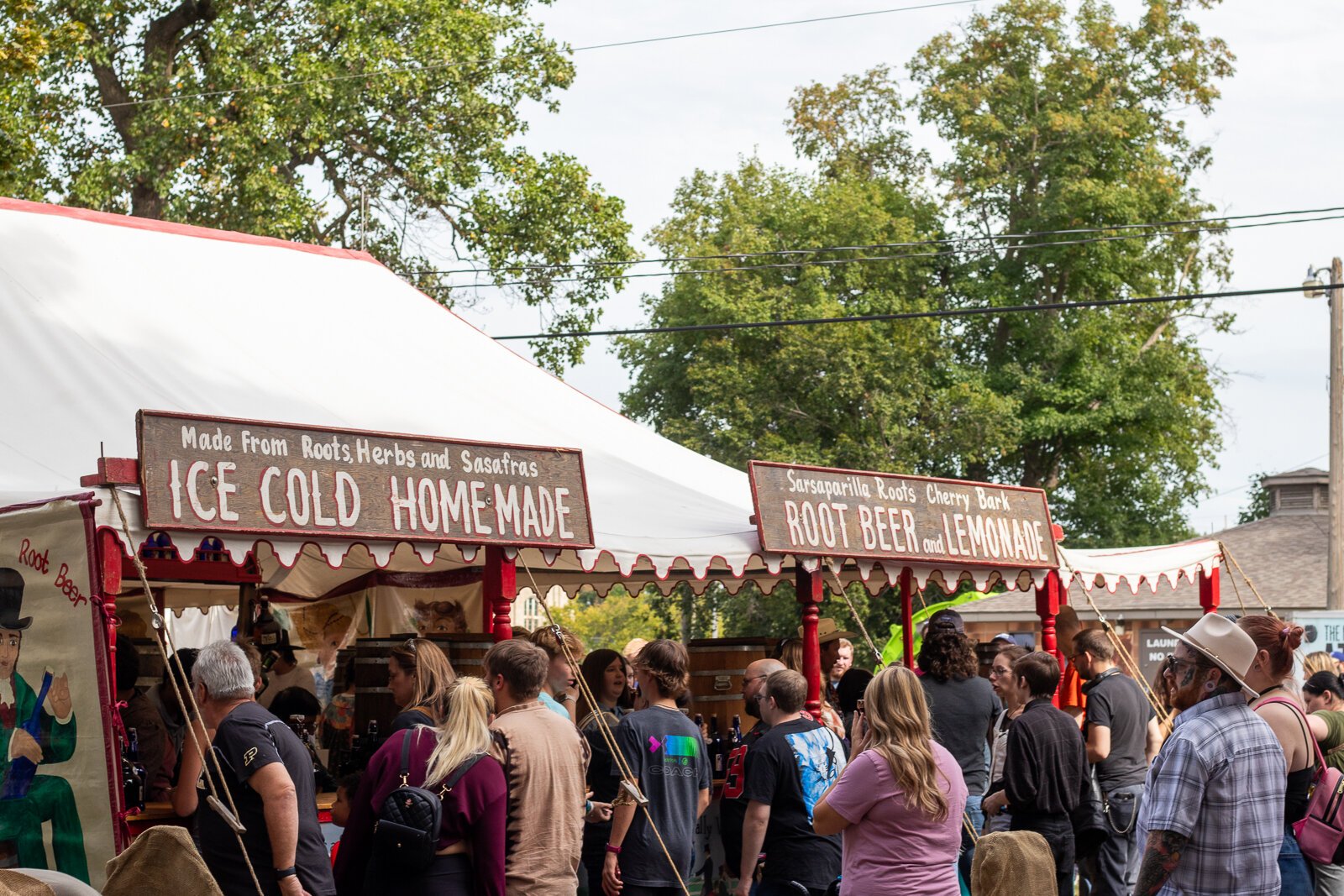Festival-goers wait in line for Little Johns Sarsaparilla Rootbeer, a staple of the Johnny Appleseed Festival.
