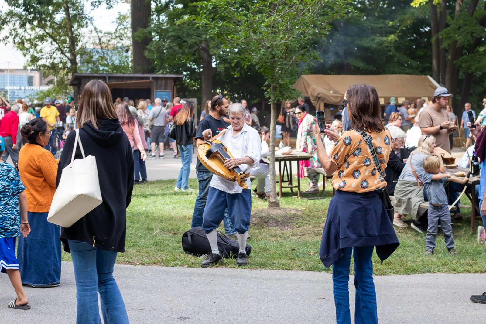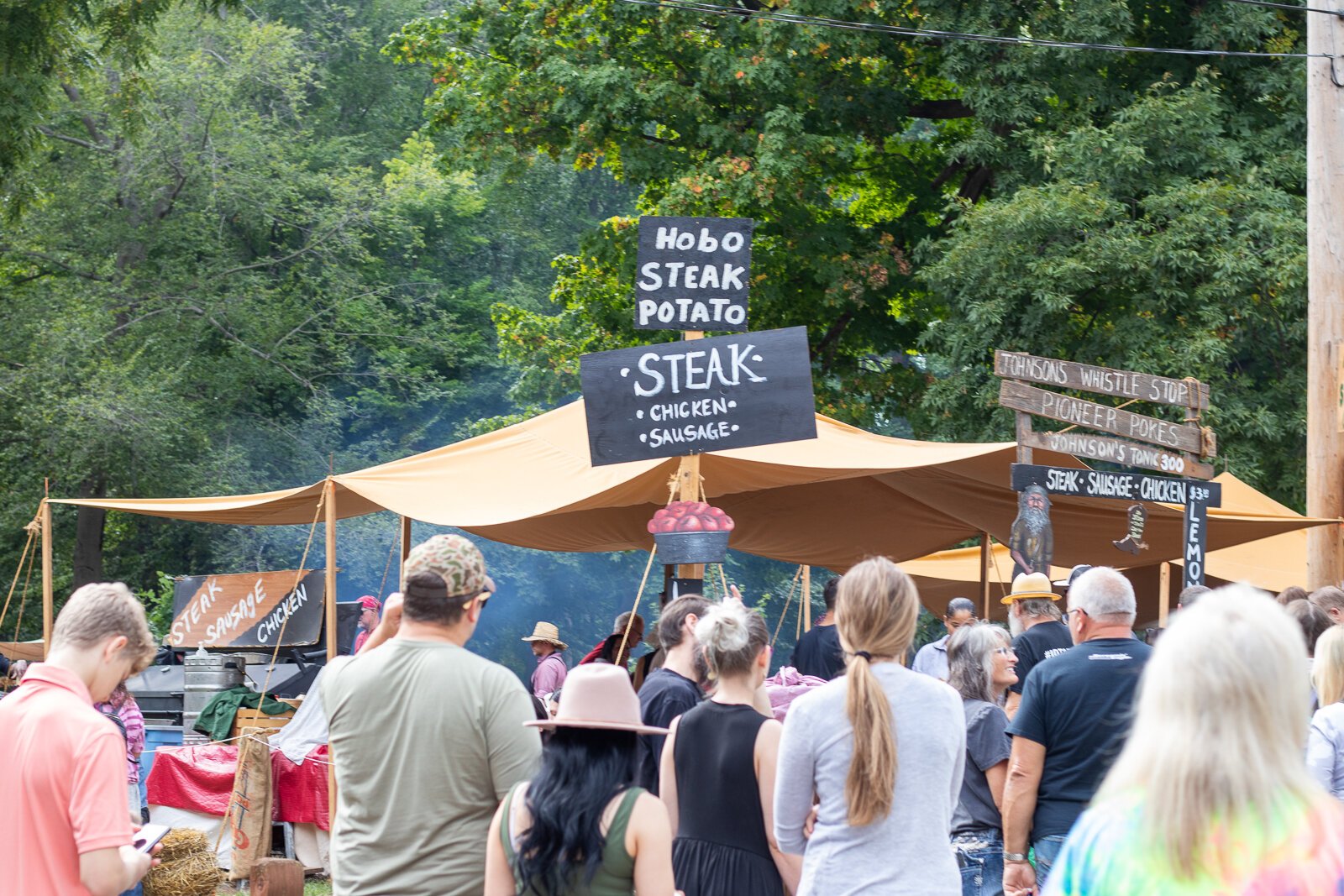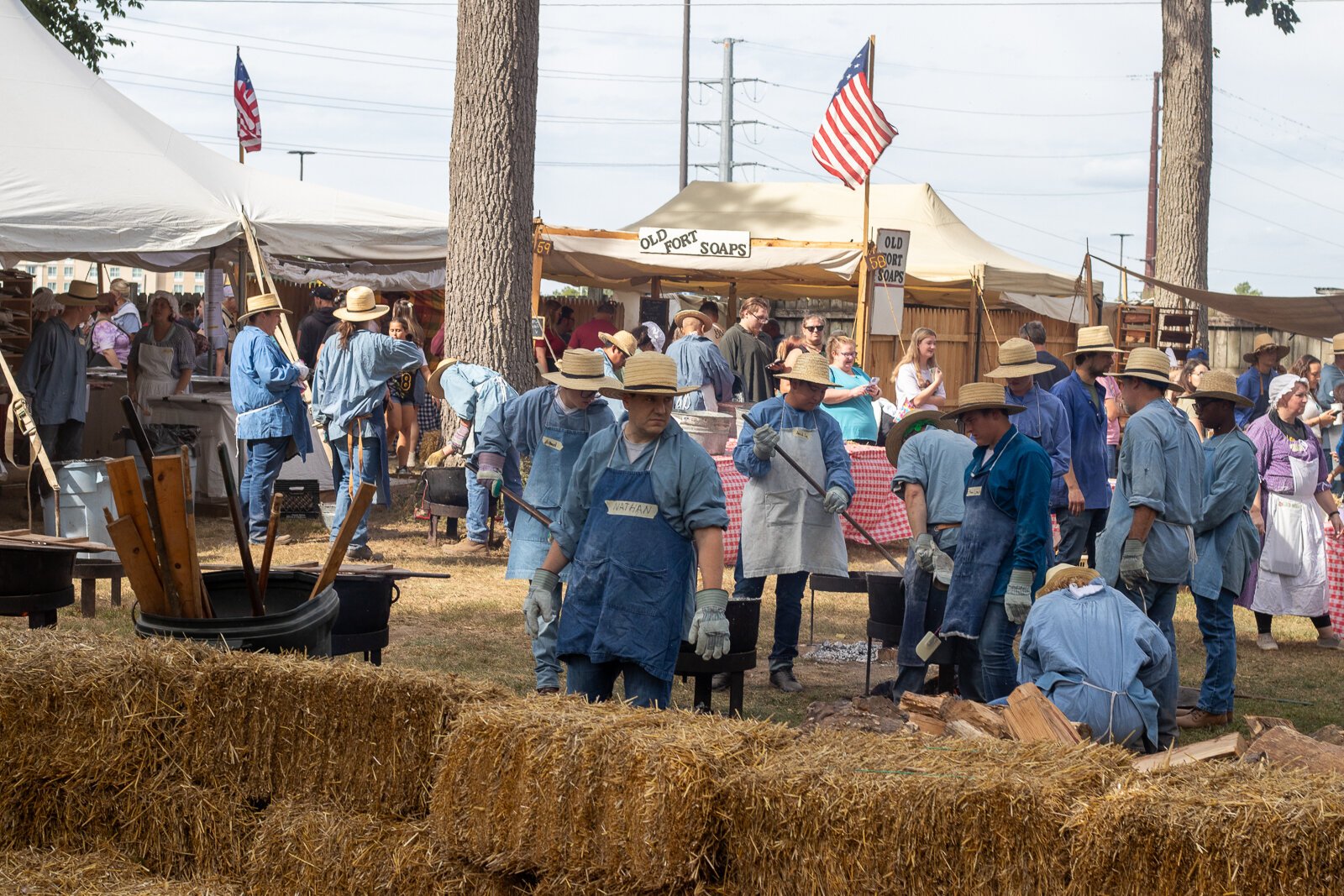 According to the Festival’s website, no modern conveniences are allowed: “Cooking must be done over an open fire, without the use of propane gas. Vendors are required to dress in 1800 period dress, sell products, demonstrate trades, entertain and provide food potentially available within the 1800’s. Some food delicacies may look a bit modern, but if you do a bit of research you will find that a similar opportunity was available back then.”