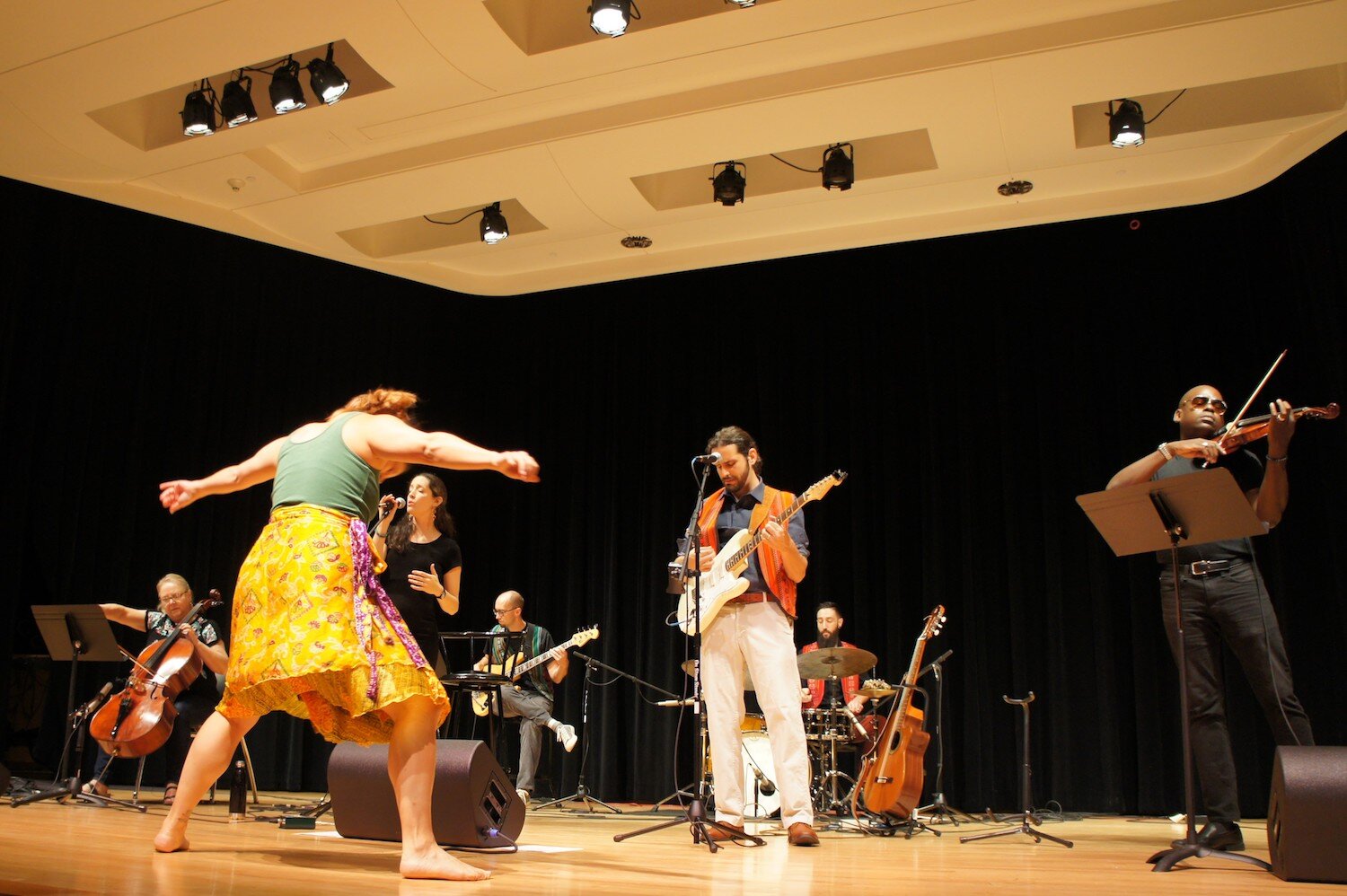 Before moving to the U.S., the couple lived in Santiago—Chile’s capital and largest city—for about five years, where they collaborated with talented artists around the country and in Argentina. Now, despite living in a smaller place, Cote believes he’s found some of “the best artists in the world” right here in Fort Wayne. Their band mates, known as the “Amig@s,” have grown to include the Fort Wayne Philharmonic’s violinist Derek Reeves, cellist Jane Heald, and pianist Tommy Saul, bass player Casey Stansifer, and percussionist Colin Boyd.