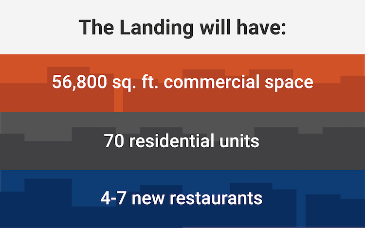 The Landing will also be the location for the professional offices of new and existing businesses. These offices will provide a buffer between the commercial space and the 70 residential units on the upper floors.