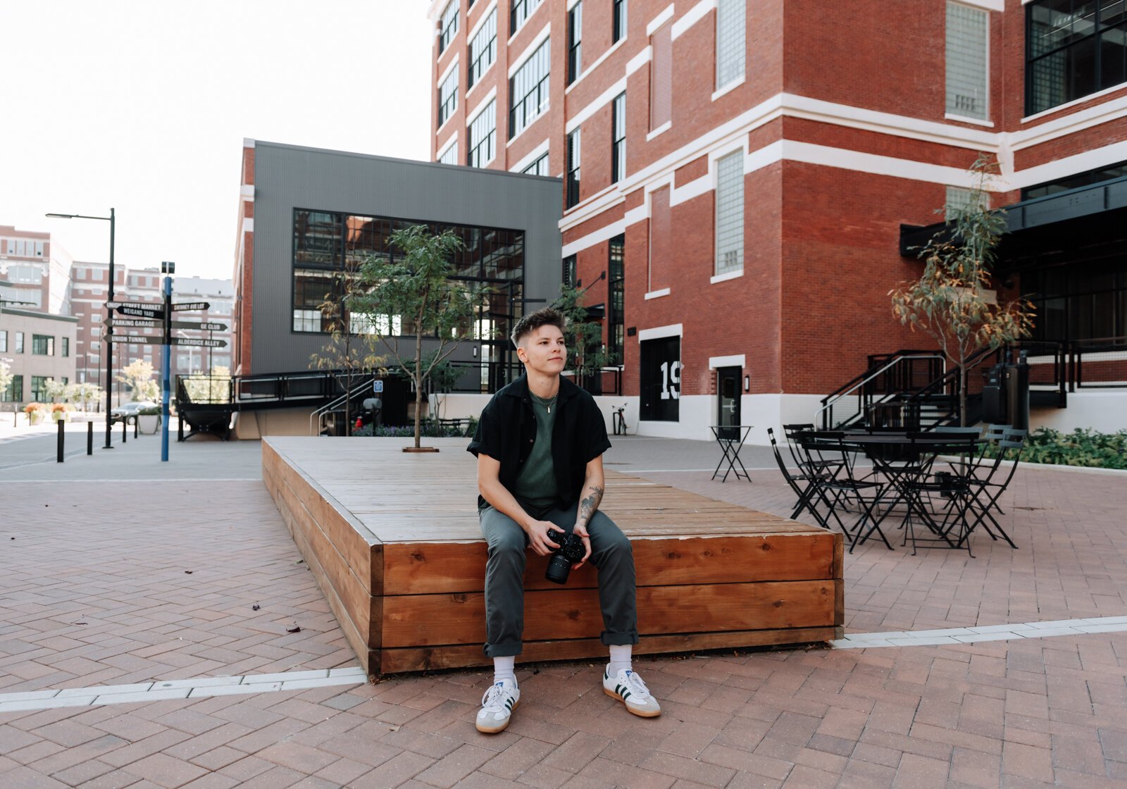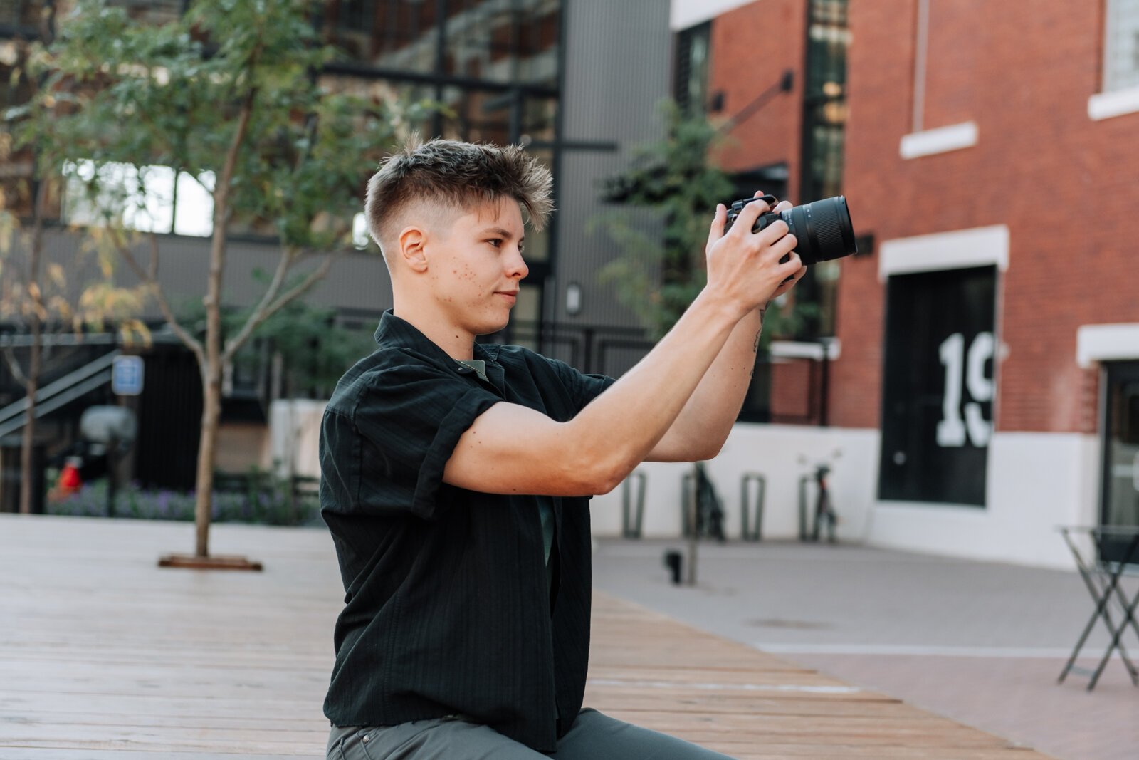 Content creator McKayla Nevers takes a photo at Electric Works.