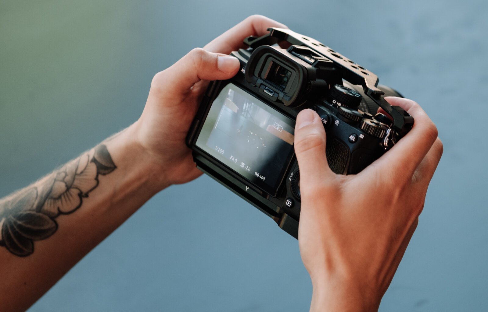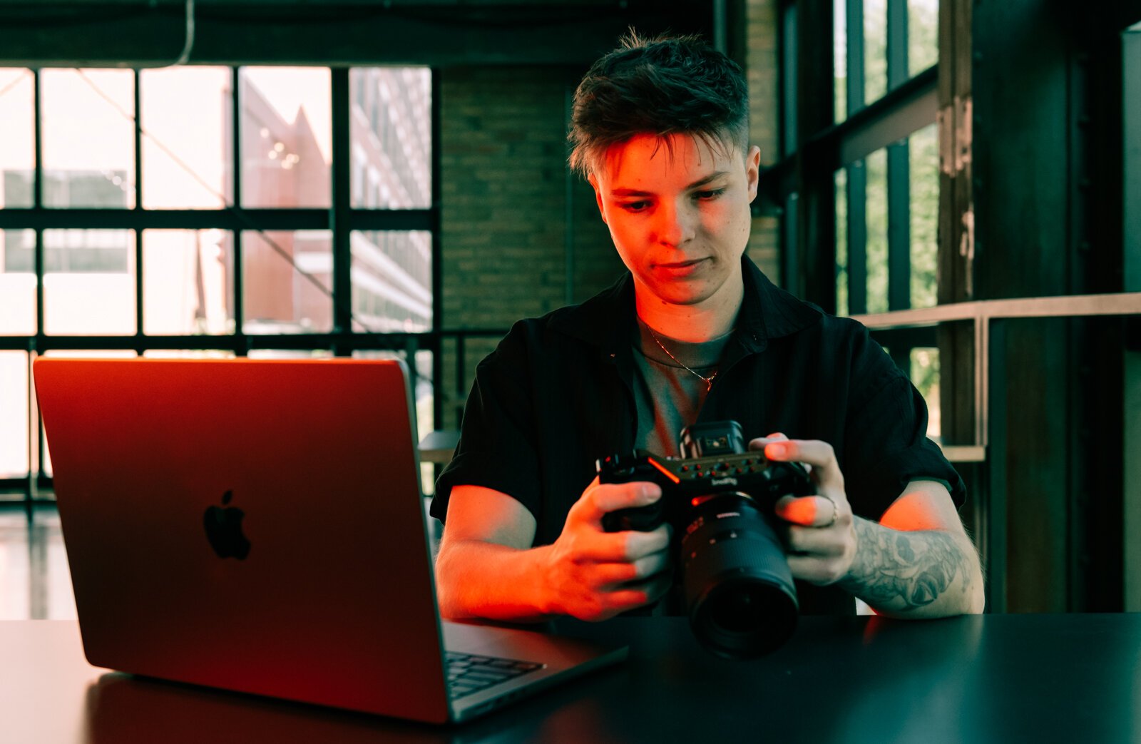 Content creator McKayla Nevers reviews an image on her camera.