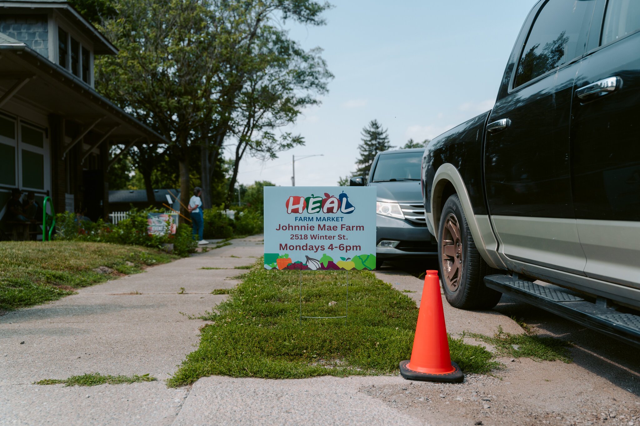 A HEAL Market sign at the Johnnie Mae Farm, 2518 Winter St, Fort Wayne, IN 46803.